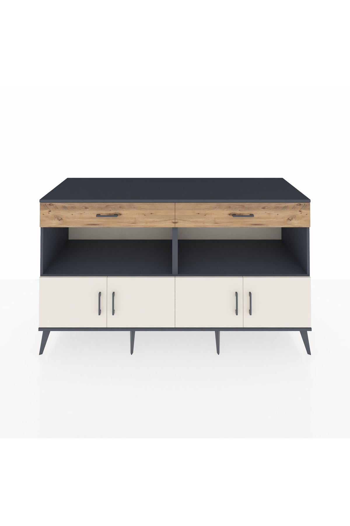 Kronos Konsol 2 Raflı 2 Çekmeceli 4 Kapaklı 176x59x99 Antrasit-Aytaşı/Çam