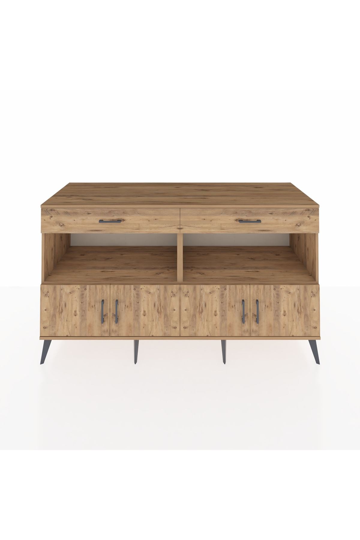 Kronos Konsol 2 Raflı 2 Çekmeceli 4 Kapaklı 176x59x99 Çam-Çam