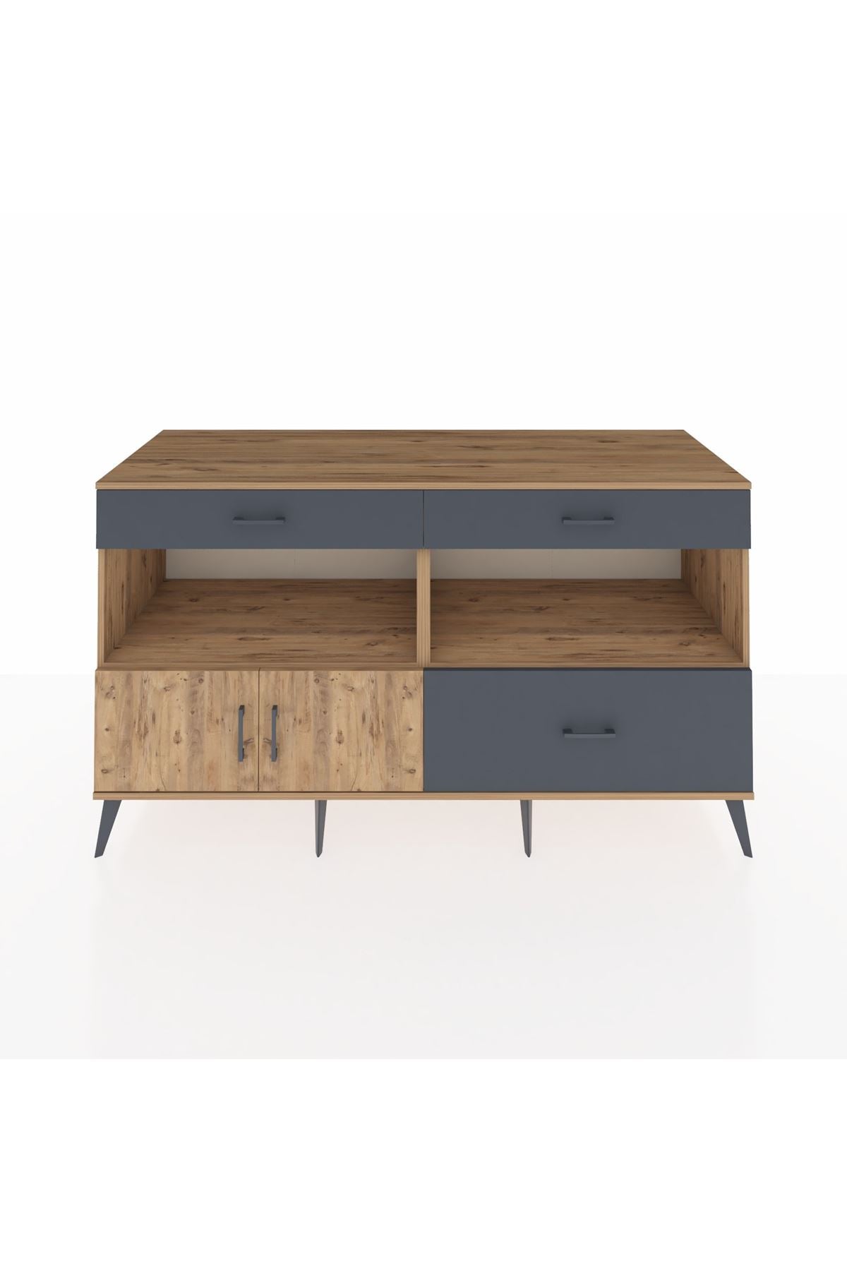 Kronos Konsol 2 Raflı 3 Çekmeceli 2 Kapaklı 176x59x99 Çam-Çam/Antrasit