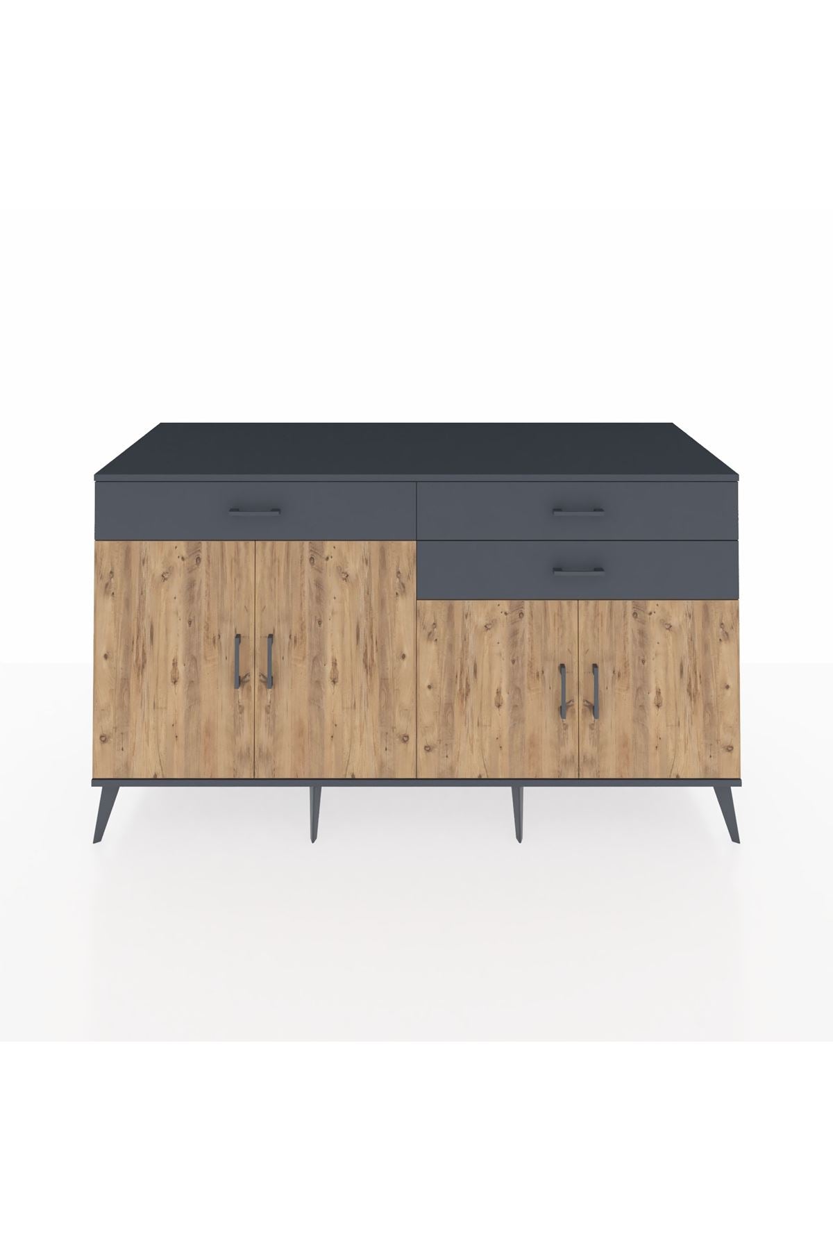 Kronos Konsol 2 Raflı 3 Çekmeceli 4 Kapaklı 176x59x99 Antrasit-Çam/Antrasit