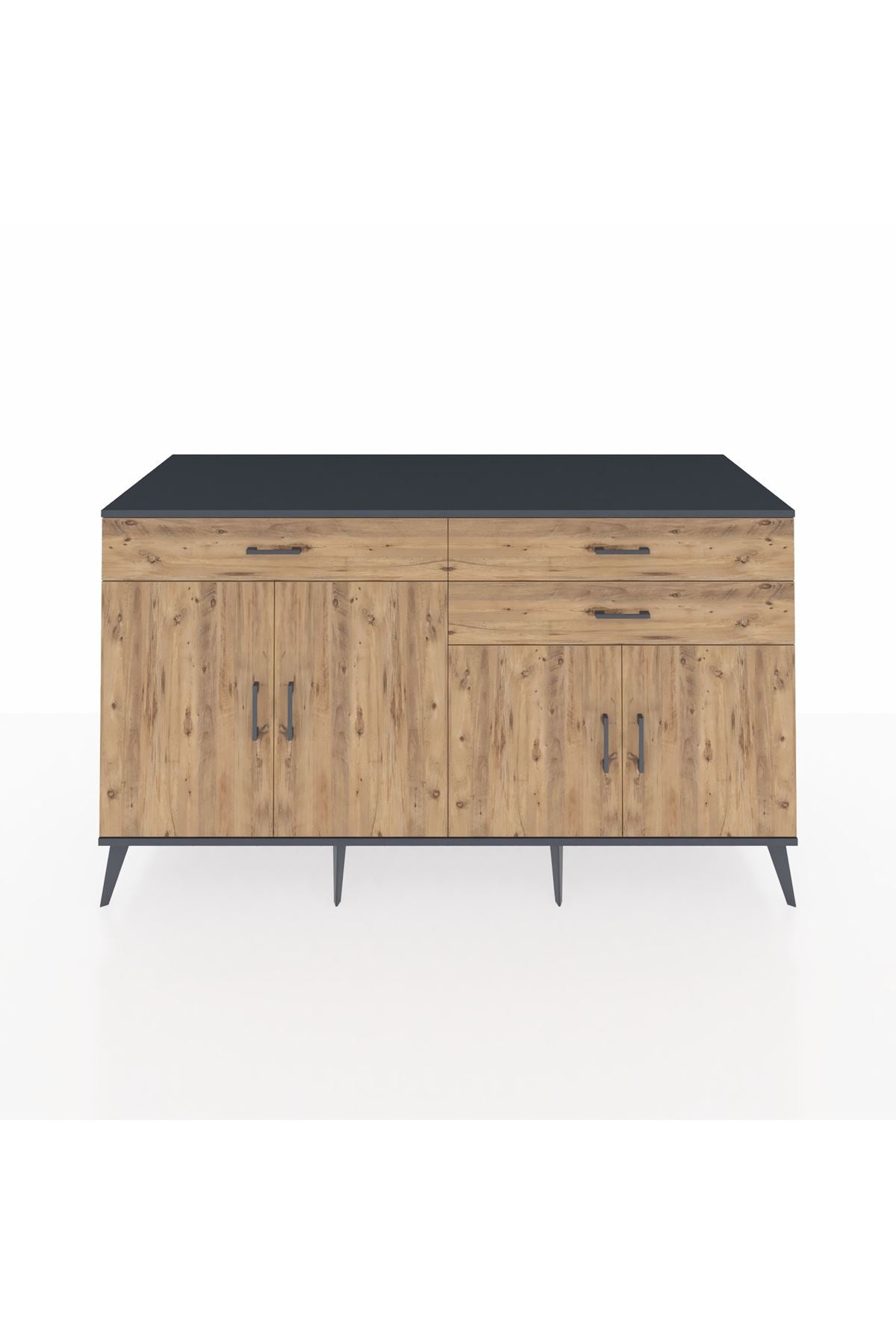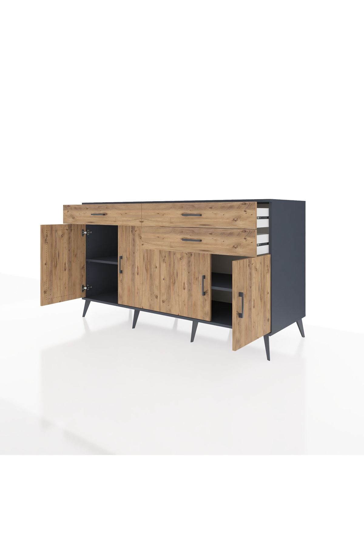 Kronos Konsol 2 Raflı 3 Çekmeceli 4 Kapaklı 176x59x99 Antrasit-Çam