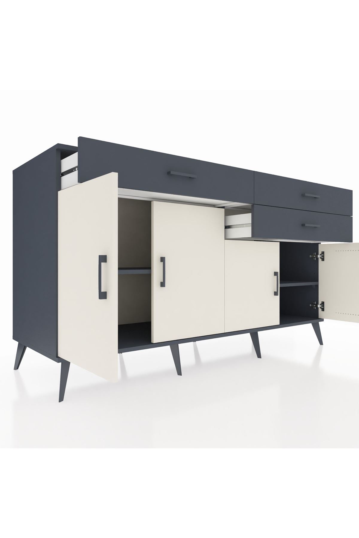 Kronos Konsol 2 Raflı 3 Çekmeceli 4 Kapaklı 176x59x99 Antrasit-Aytaşı/Antrasit