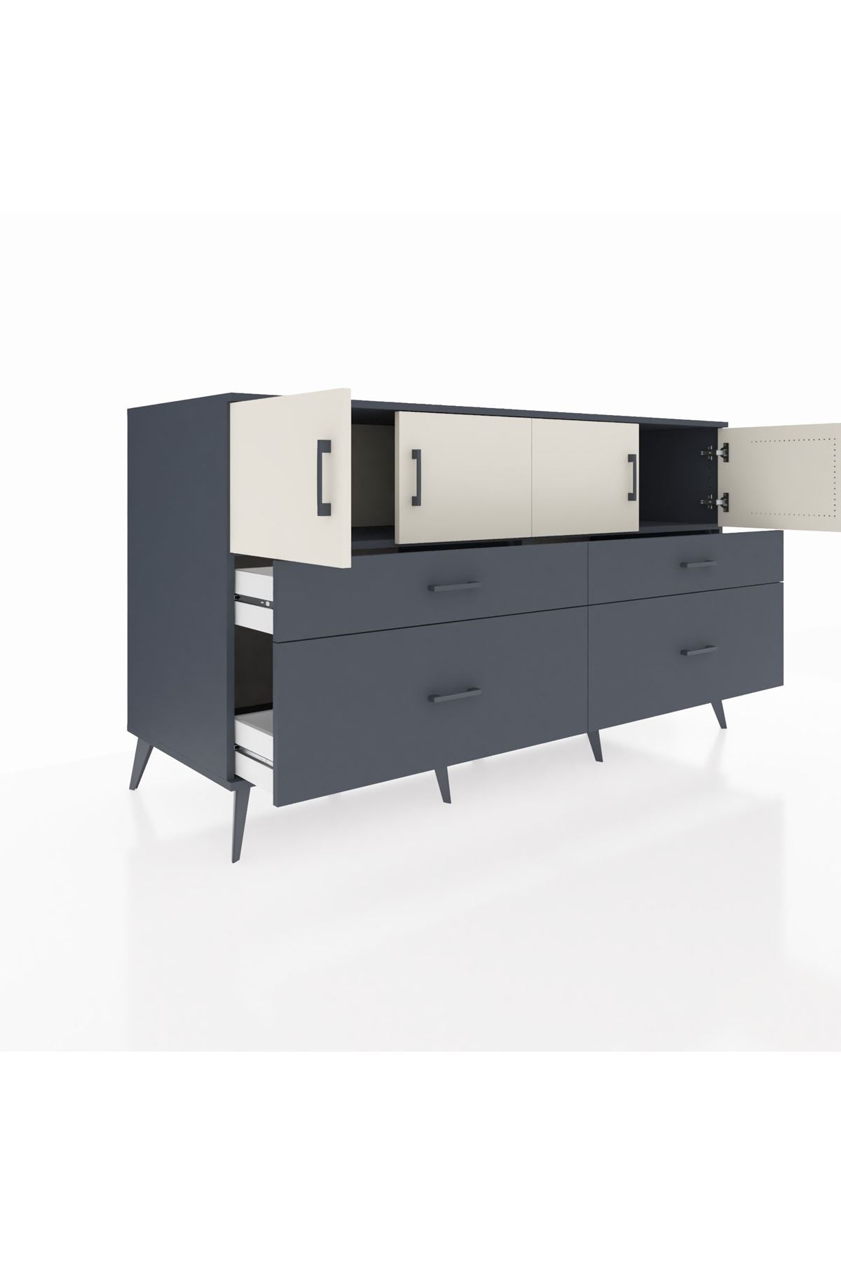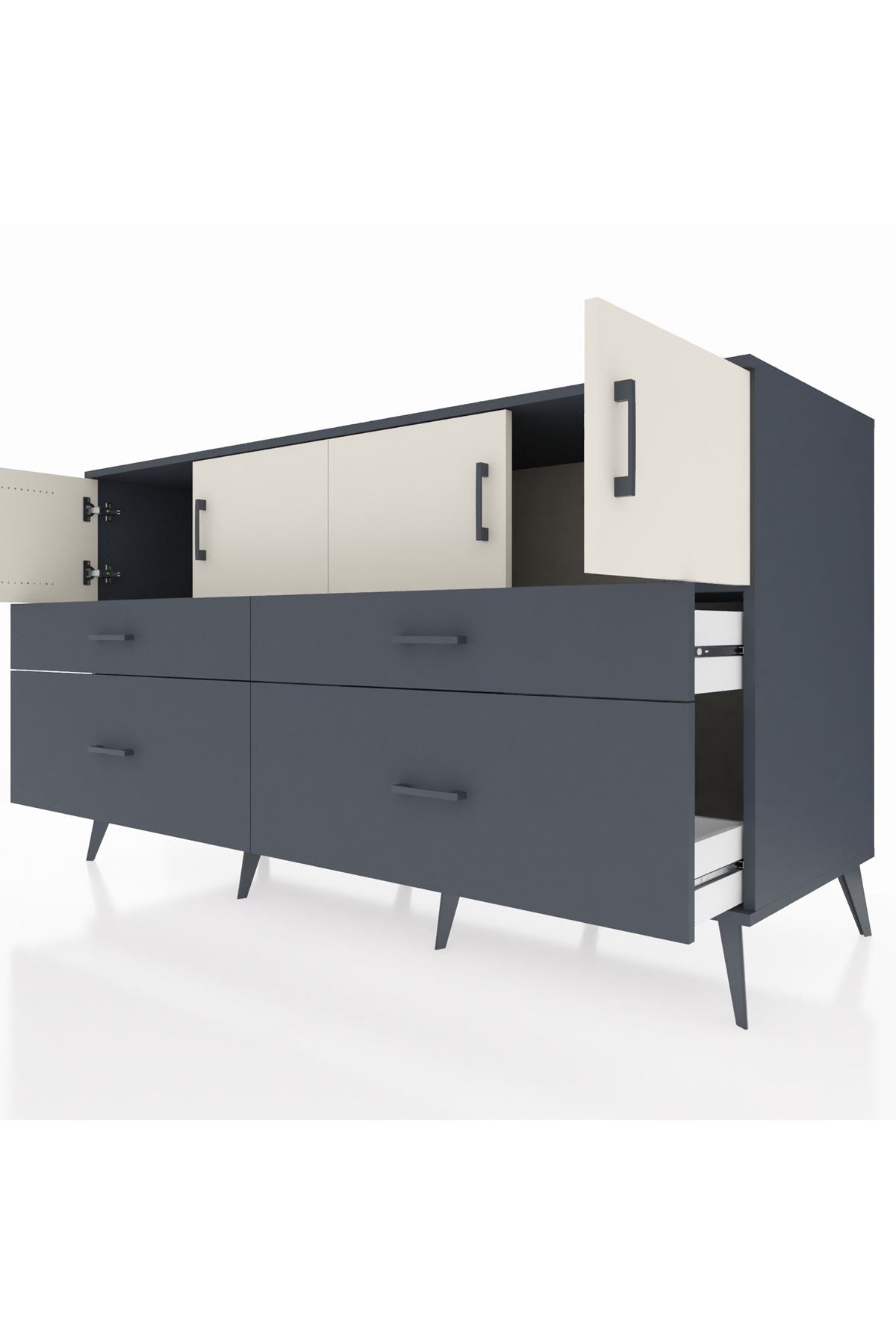 Kronos Konsol 2 Raflı 4 Çekmeceli 4 Kapaklı 176x59x99 Antrasit-Aytaşı/Antrasit
