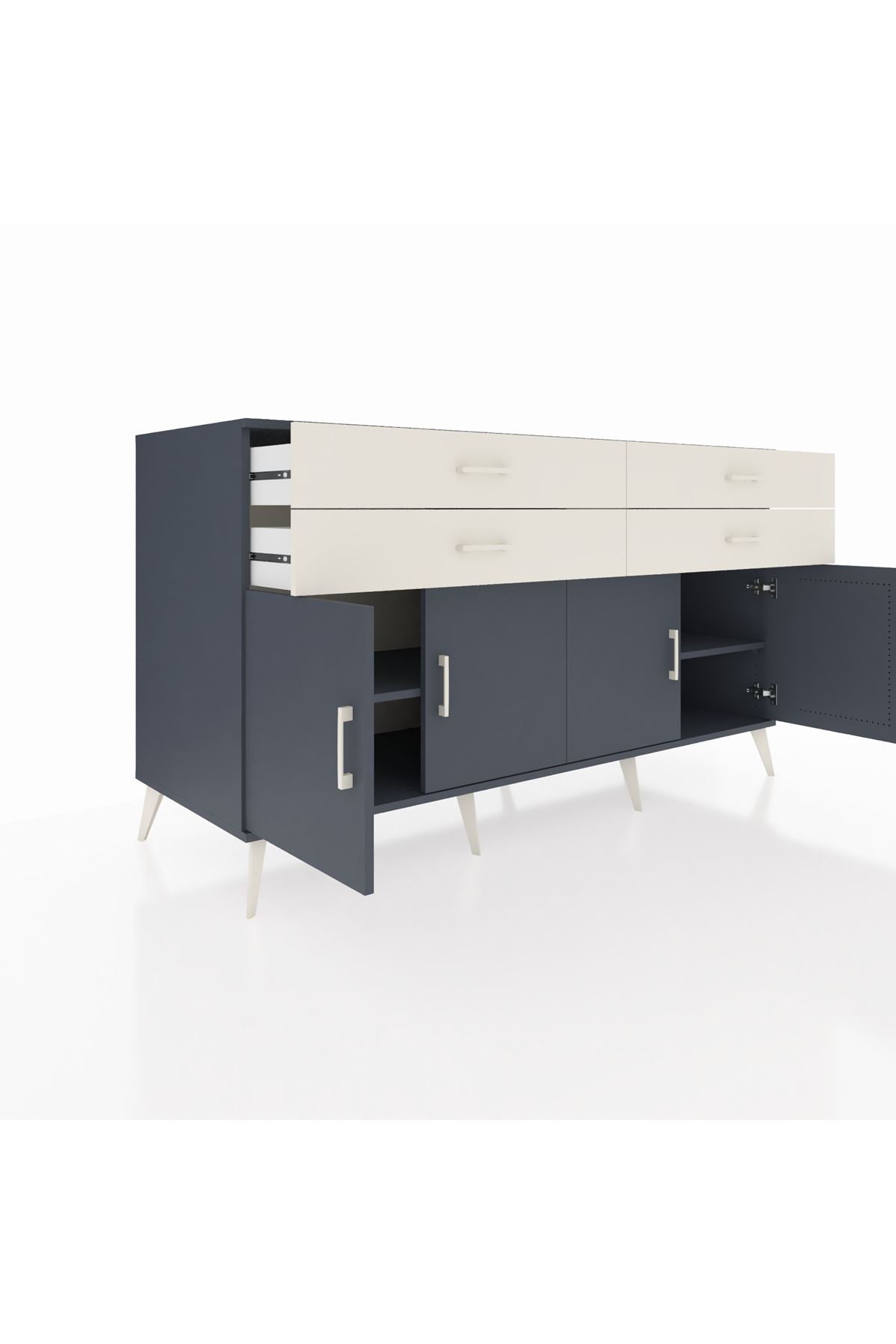 Kronos Konsol 2 Raflı 4 Çekmeceli 8 Kapaklı 176x59x99 Antrasit-Antrasit/Aytaşı