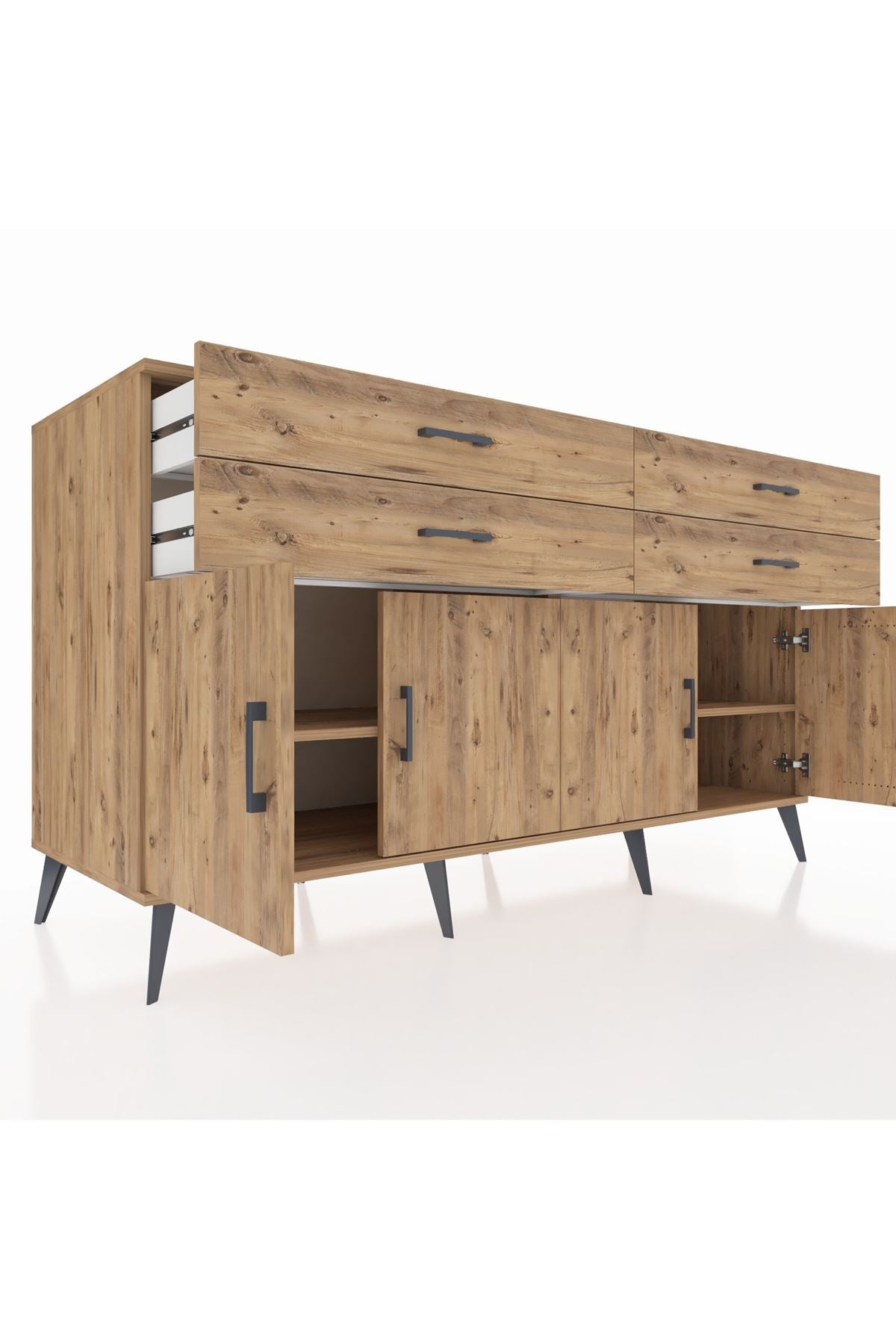 Kronos Konsol 2 Raflı 4 Çekmeceli 8 Kapaklı 176x59x99 Çam-Çam