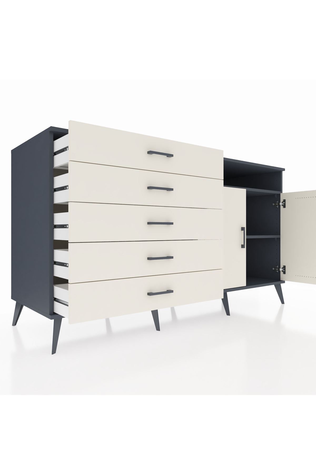 Kronos Konsol 2 Raflı 5 Çekmeceli 2 Kapaklı 176x59x99 Antrasit-Aytaşı