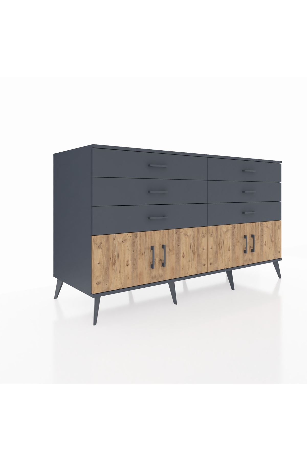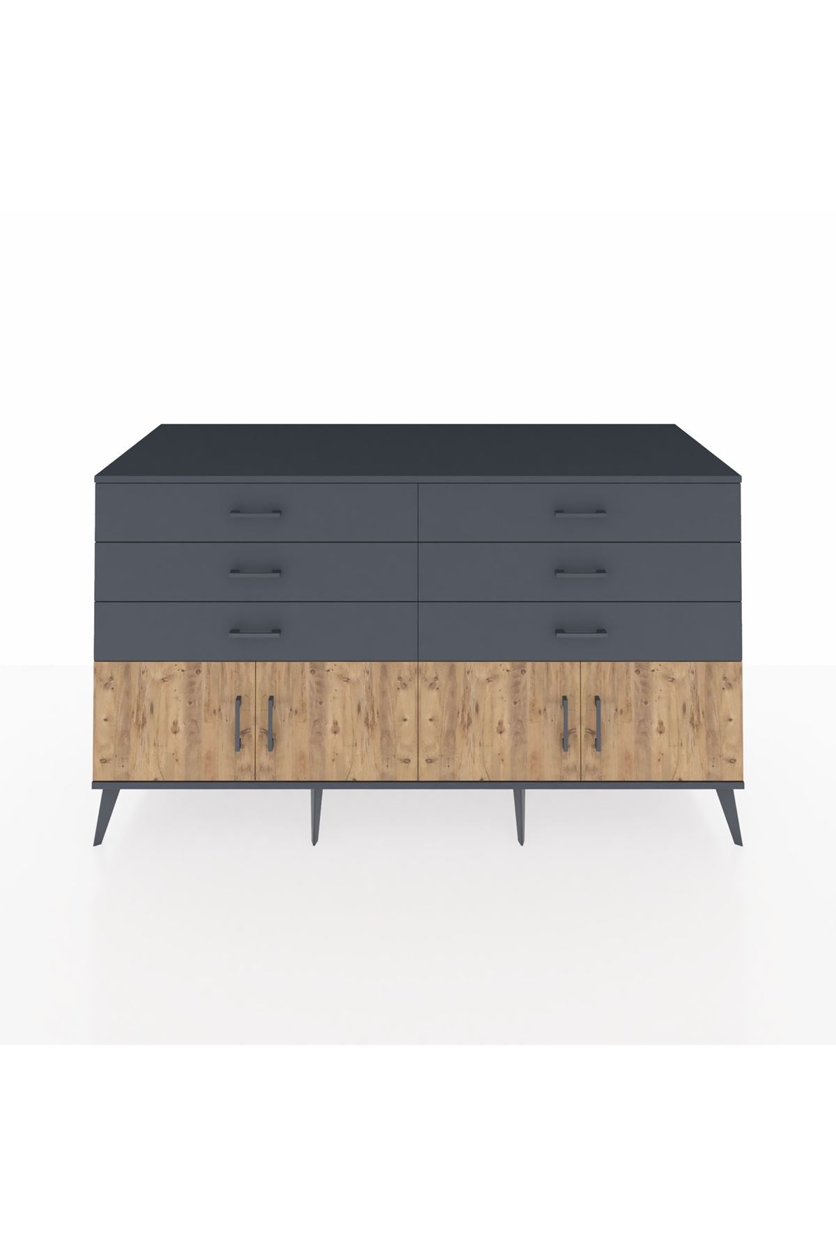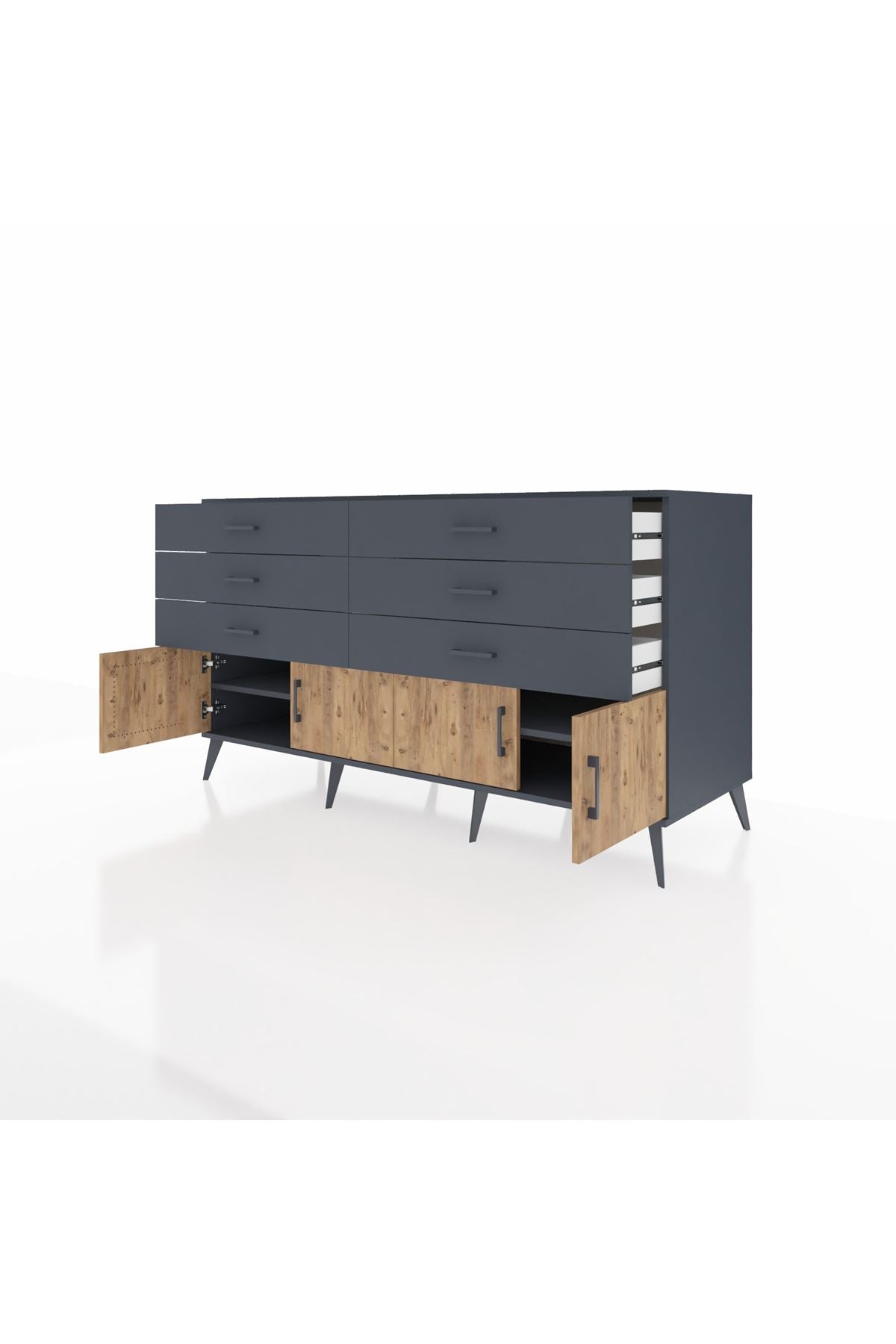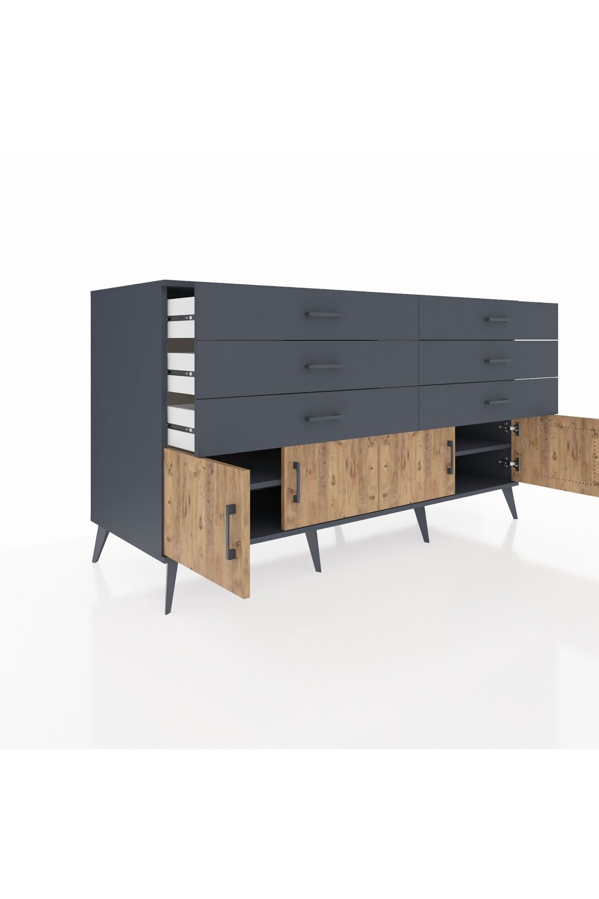 Kronos Konsol 2 Raflı 6 Çekmeceli 4 Kapaklı 176x59x99 Antrasit-Çam/Antrasit