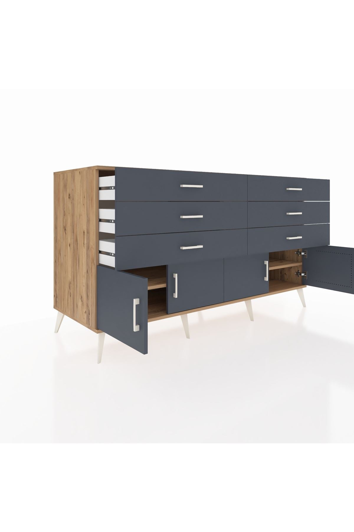 Kronos Konsol 2 Raflı 6 Çekmeceli 4 Kapaklı 176x59x99 Çam-Antrasit