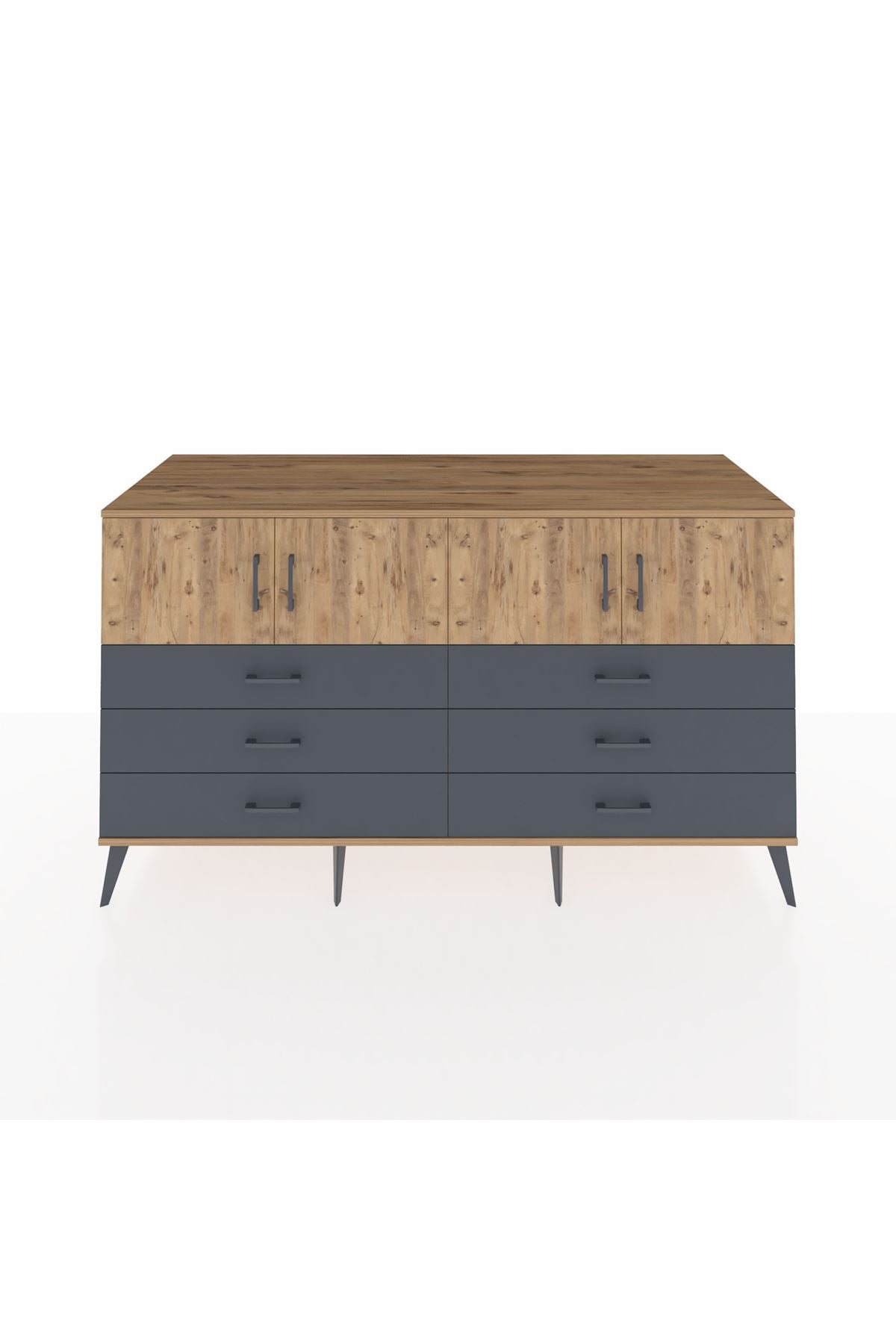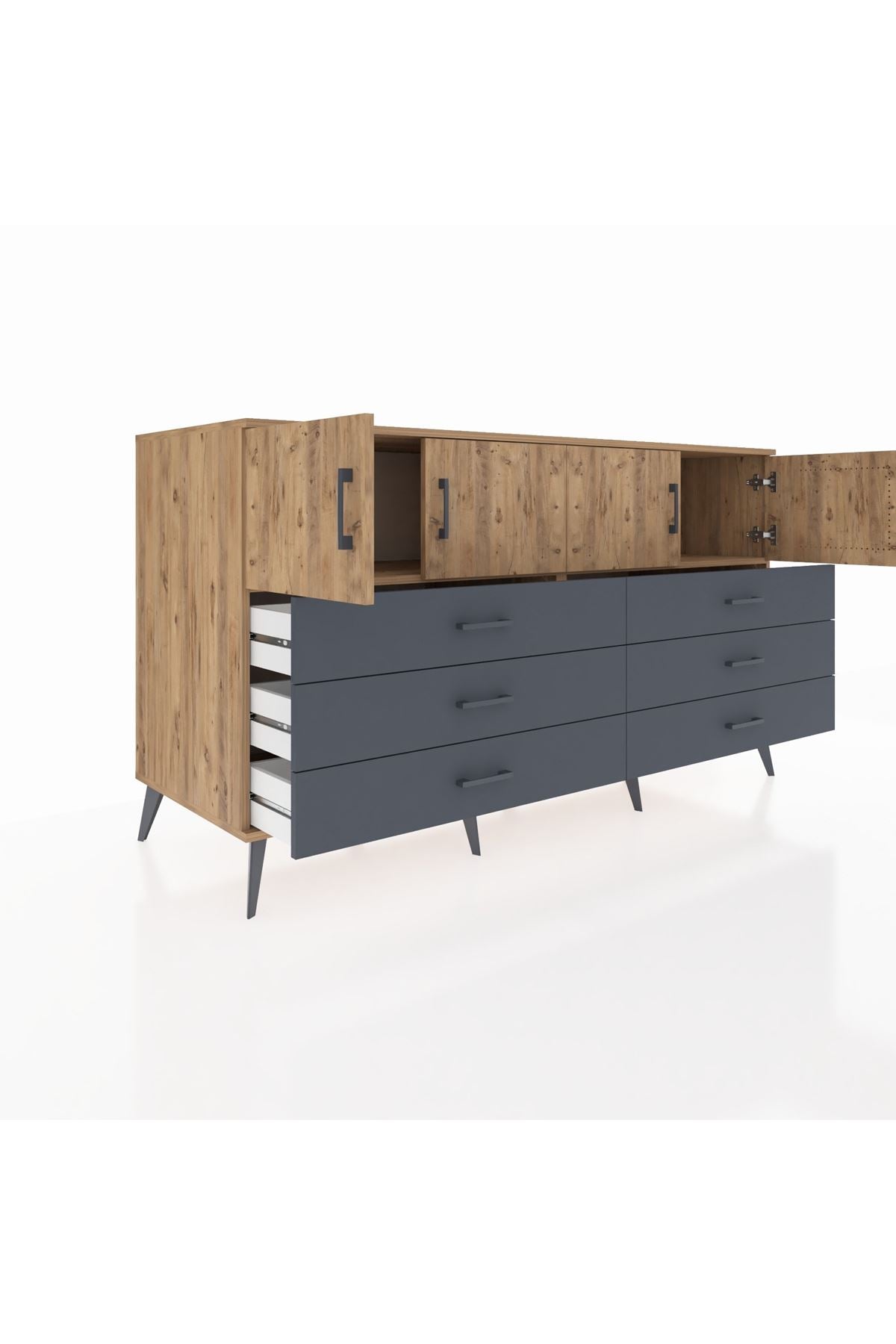 Kronos Konsol 2 Raflı 6 Çekmeceli 4 Kapaklı 176x59x99 Çam-Çam/Antrasit