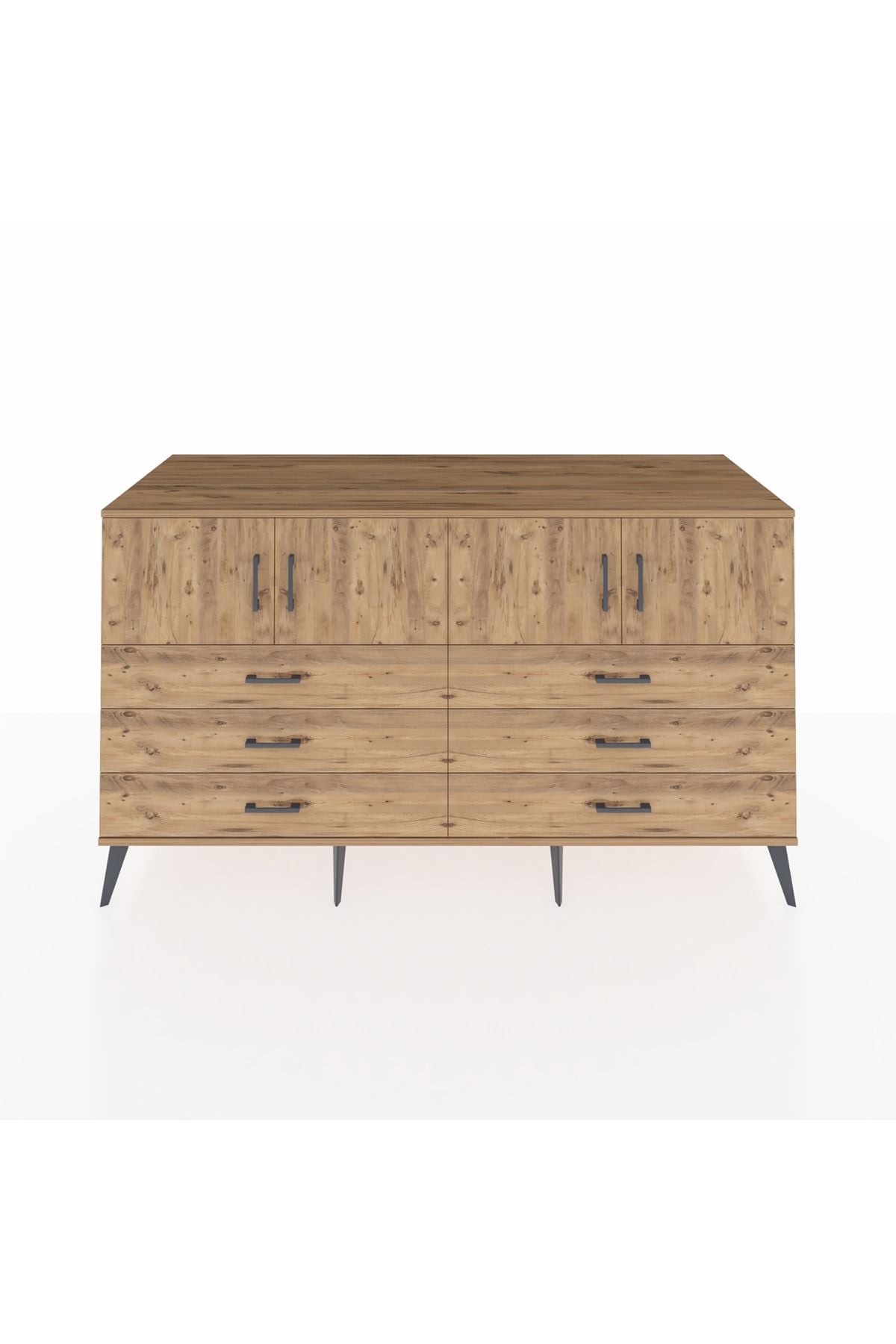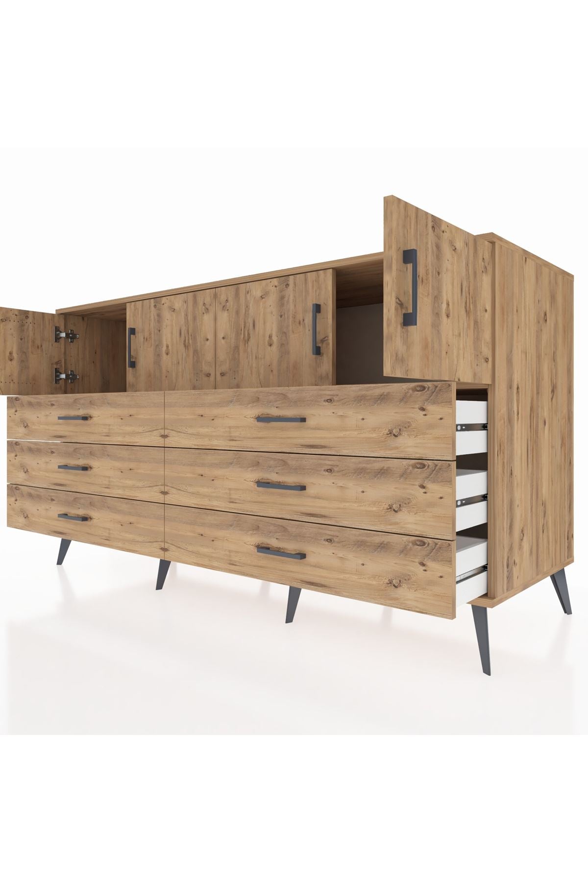Kronos Konsol 2 Raflı 6 Çekmeceli 4 Kapaklı 176x59x99 Çam-Çam