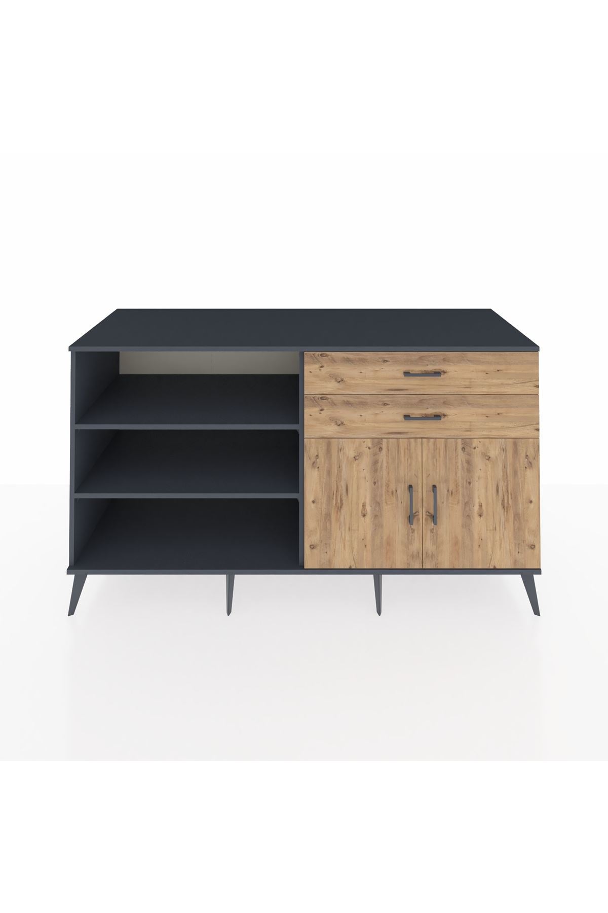 Kronos Konsol 3 Raflı 2 Çekmeceli 2 Kapaklı 176x59x99 Antrasit-Çam