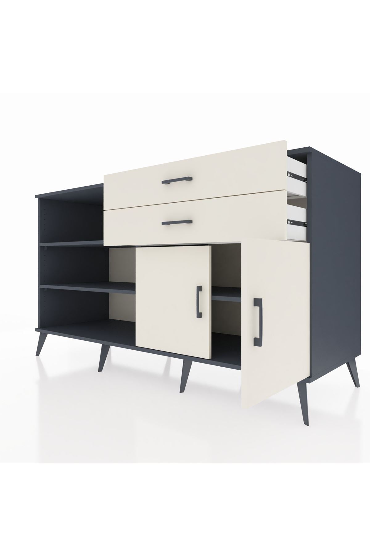 Kronos Konsol 3 Raflı 2 Çekmeceli 2 Kapaklı 176x59x99 Antrasit-Aytaşı
