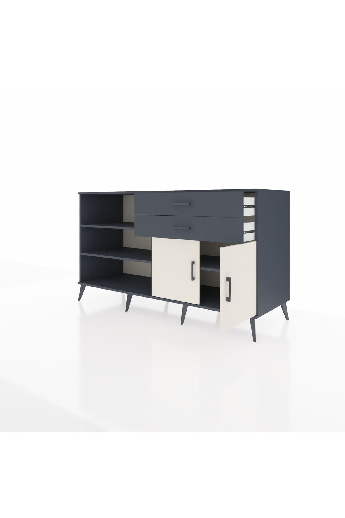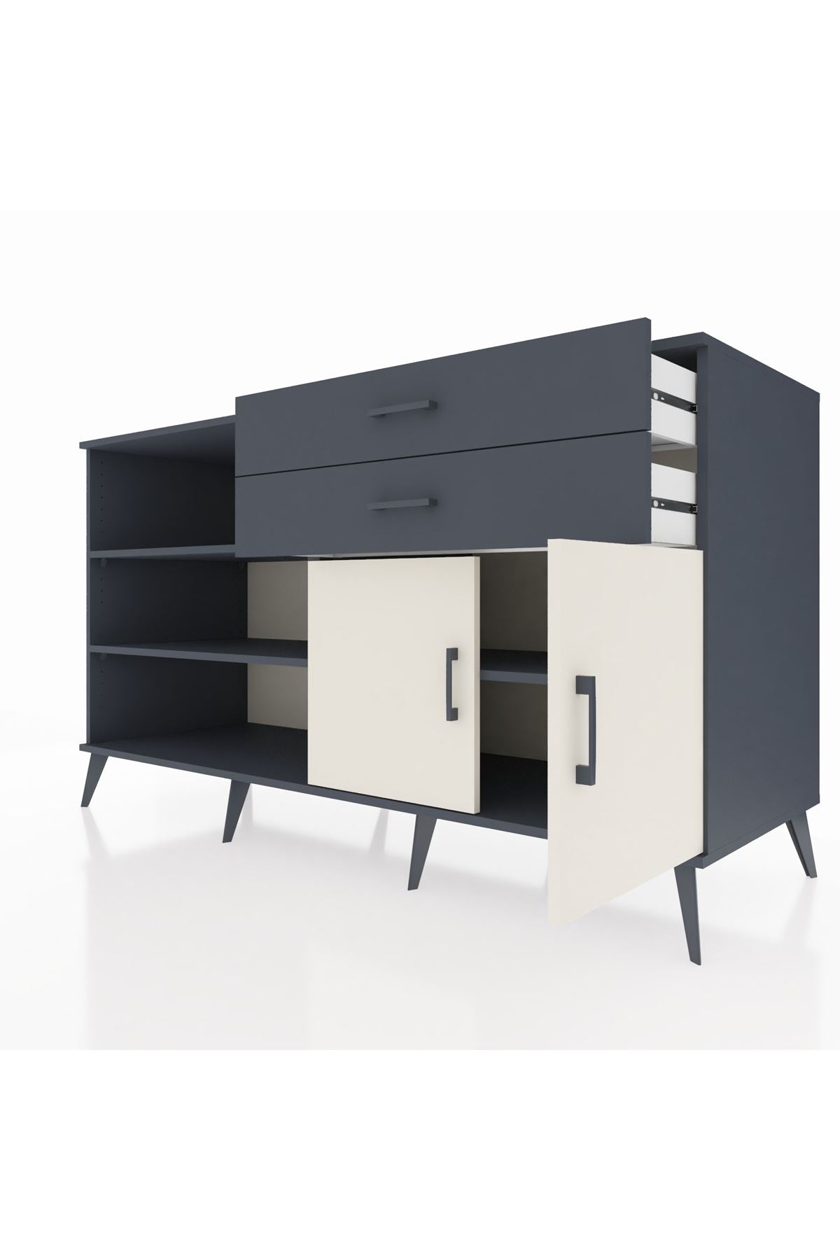 Kronos Konsol 3 Raflı 2 Çekmeceli 2 Kapaklı 176x59x99 Antrasit-Aytaşı/Antrasit