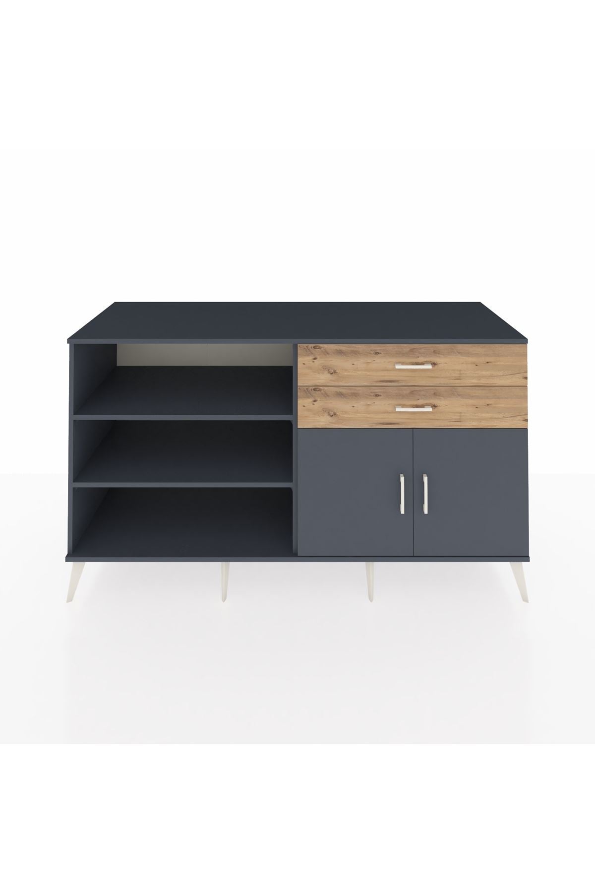 Kronos Konsol 3 Raflı 2 Çekmeceli 2 Kapaklı 176x59x99 Antrasit-Antrasit/Çam