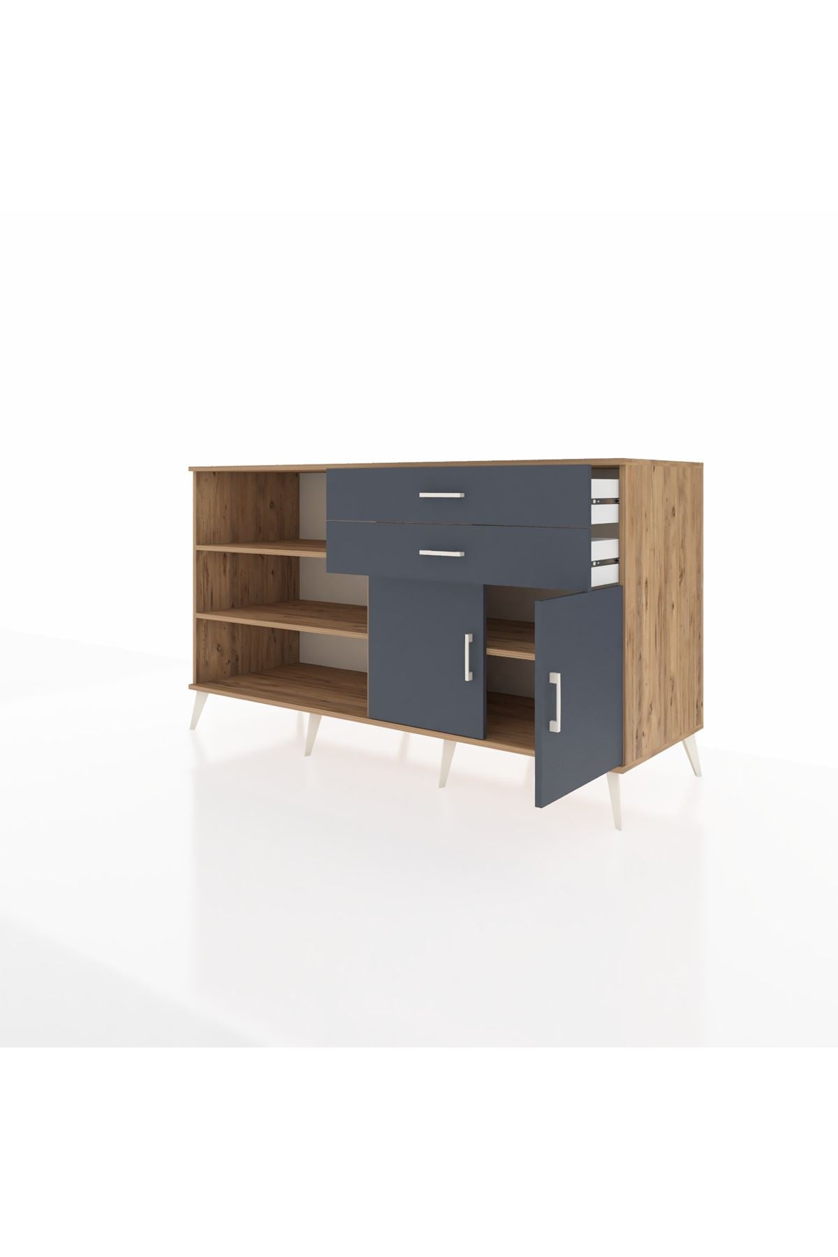 Kronos Konsol 3 Raflı 2 Çekmeceli 2 Kapaklı 176x59x99 Çam-Antrasit