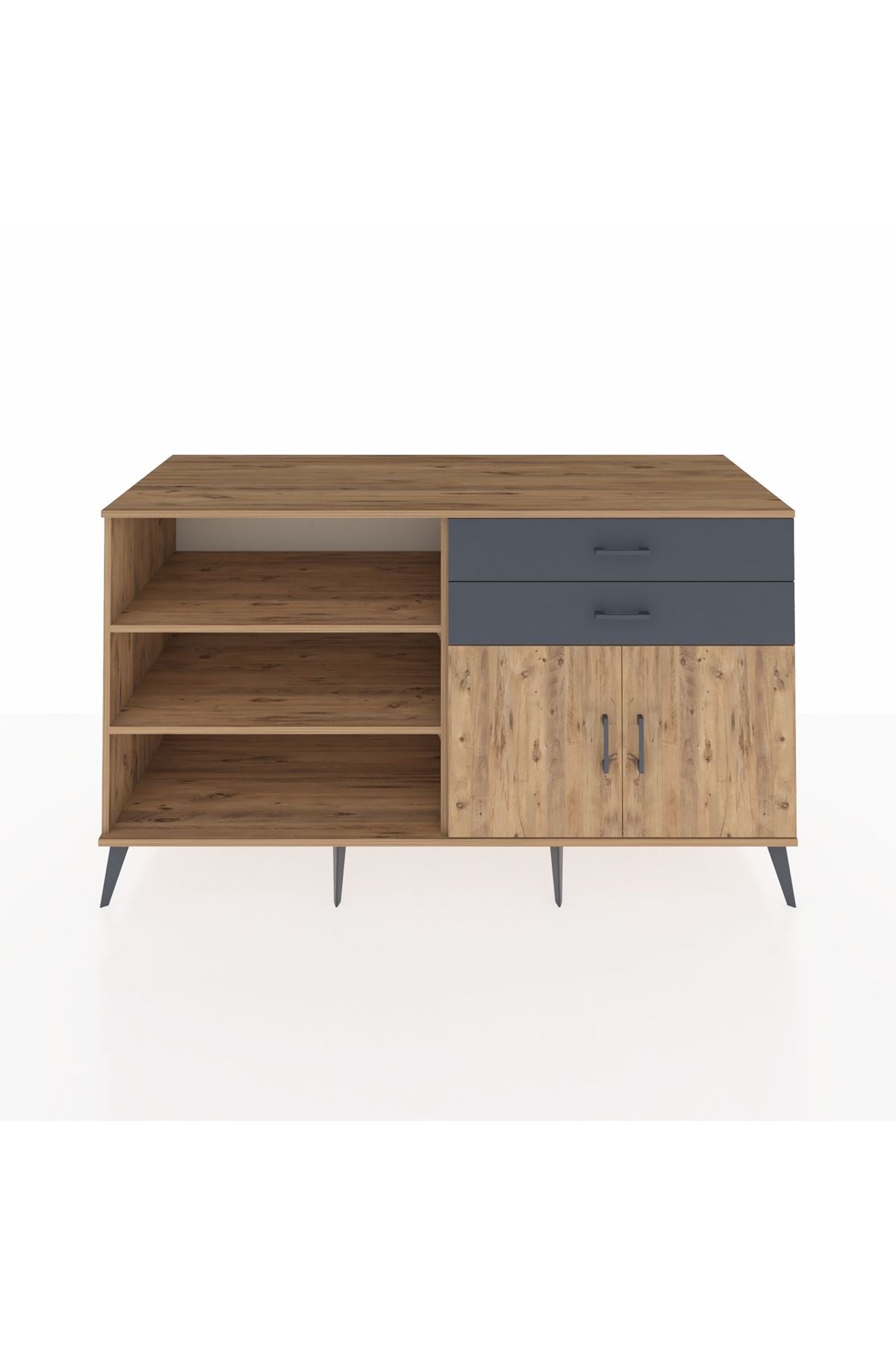 Kronos Konsol 3 Raflı 2 Çekmeceli 2 Kapaklı 176x59x99 Çam-Çam/Antrasit