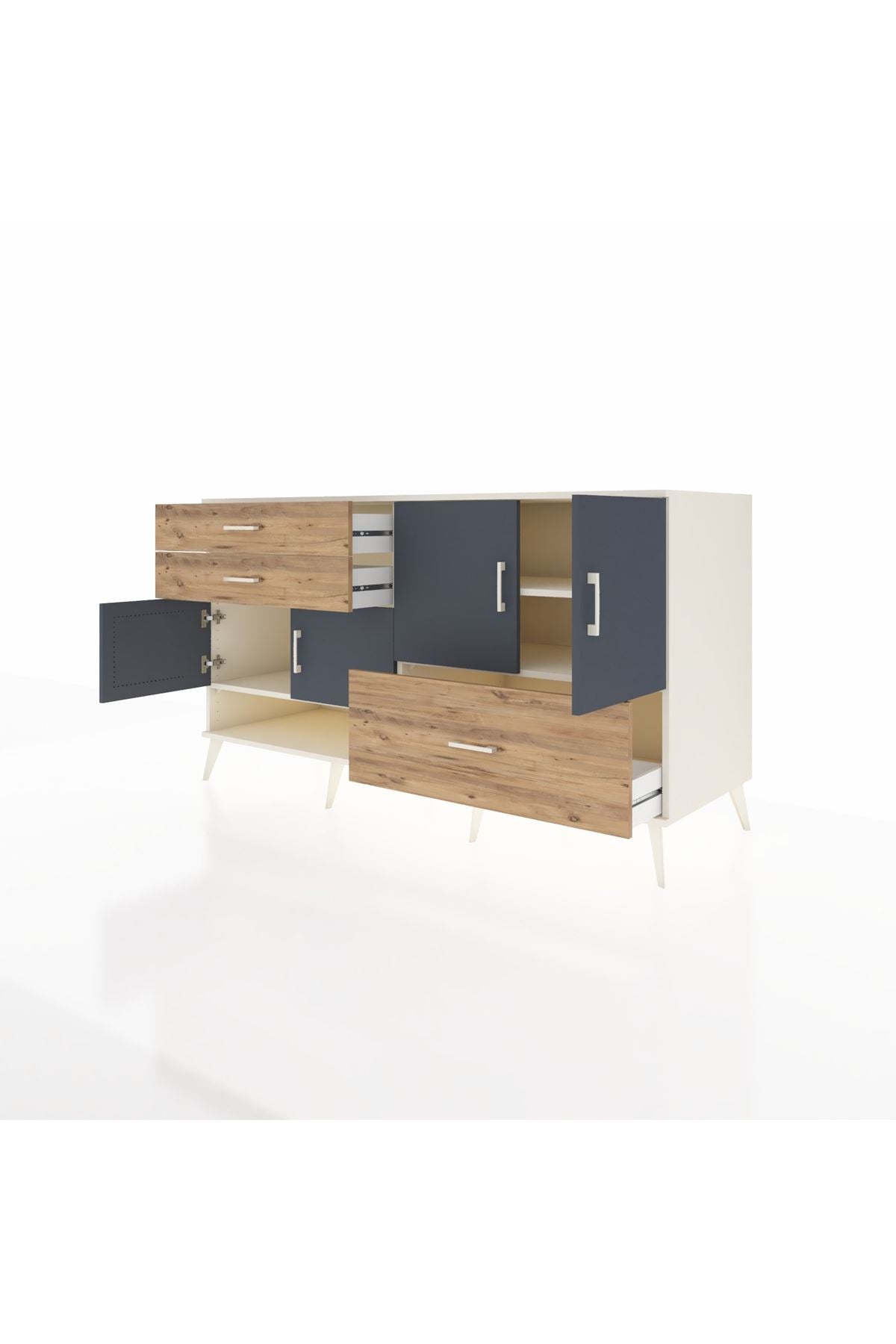 Kronos Konsol 3 Raflı 3 Çekmeceli 4 Kapaklı 176x59x99 Aytaşı-Antrasit/Çam