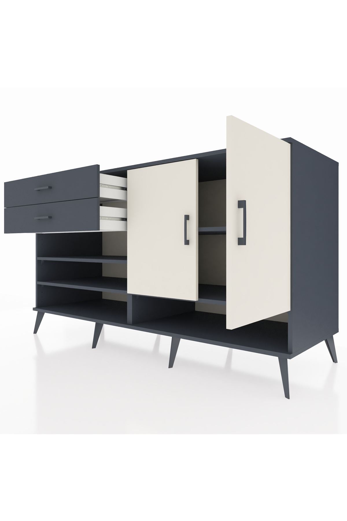 Kronos Konsol 4 Raflı 2 Çekmeceli 2 Kapaklı 176x59x99 Antrasit-Aytaşı/Antrasit