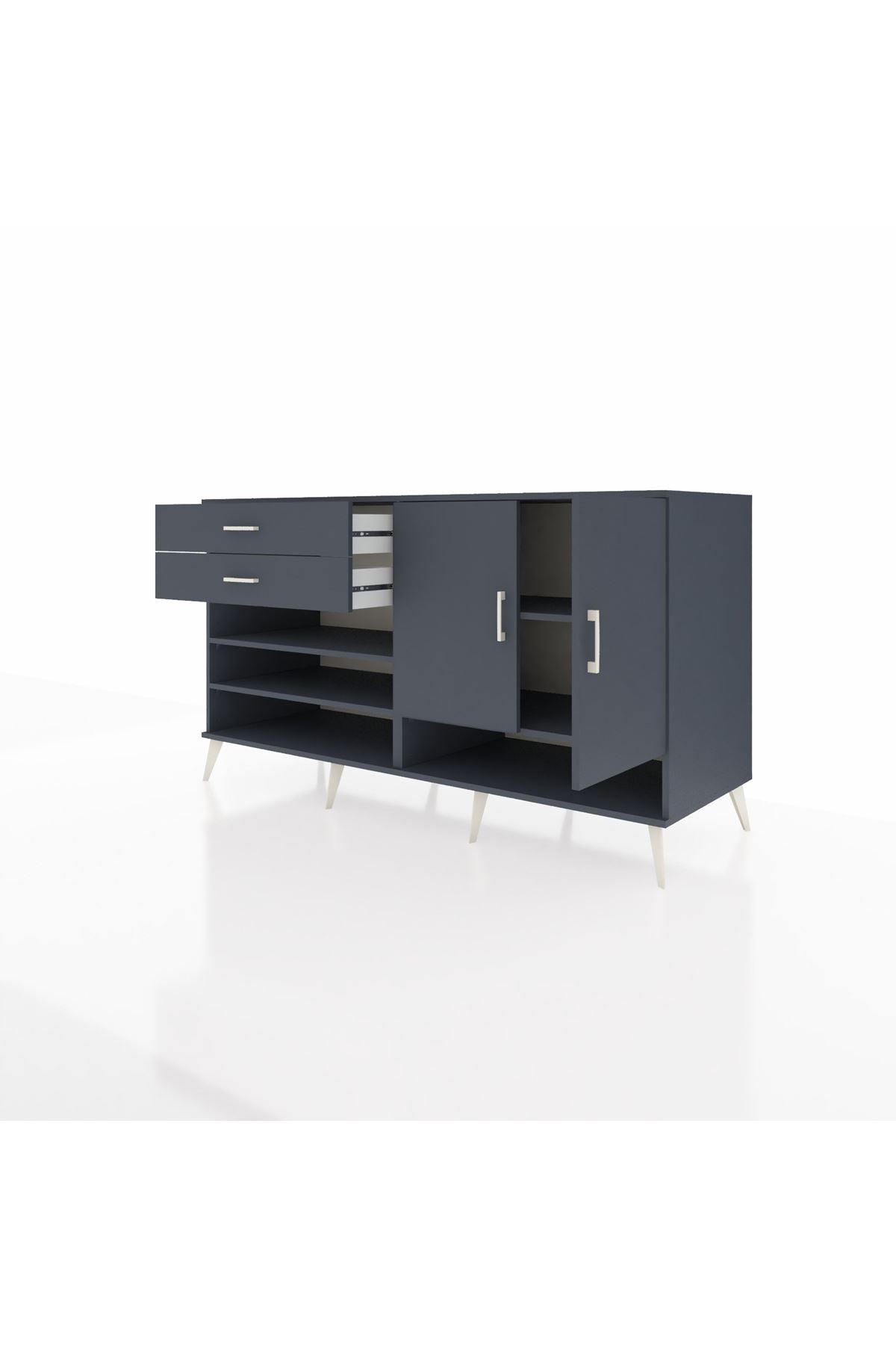 Kronos Konsol 4 Raflı 2 Çekmeceli 2 Kapaklı 176x59x99 Antrasit-Antrasit