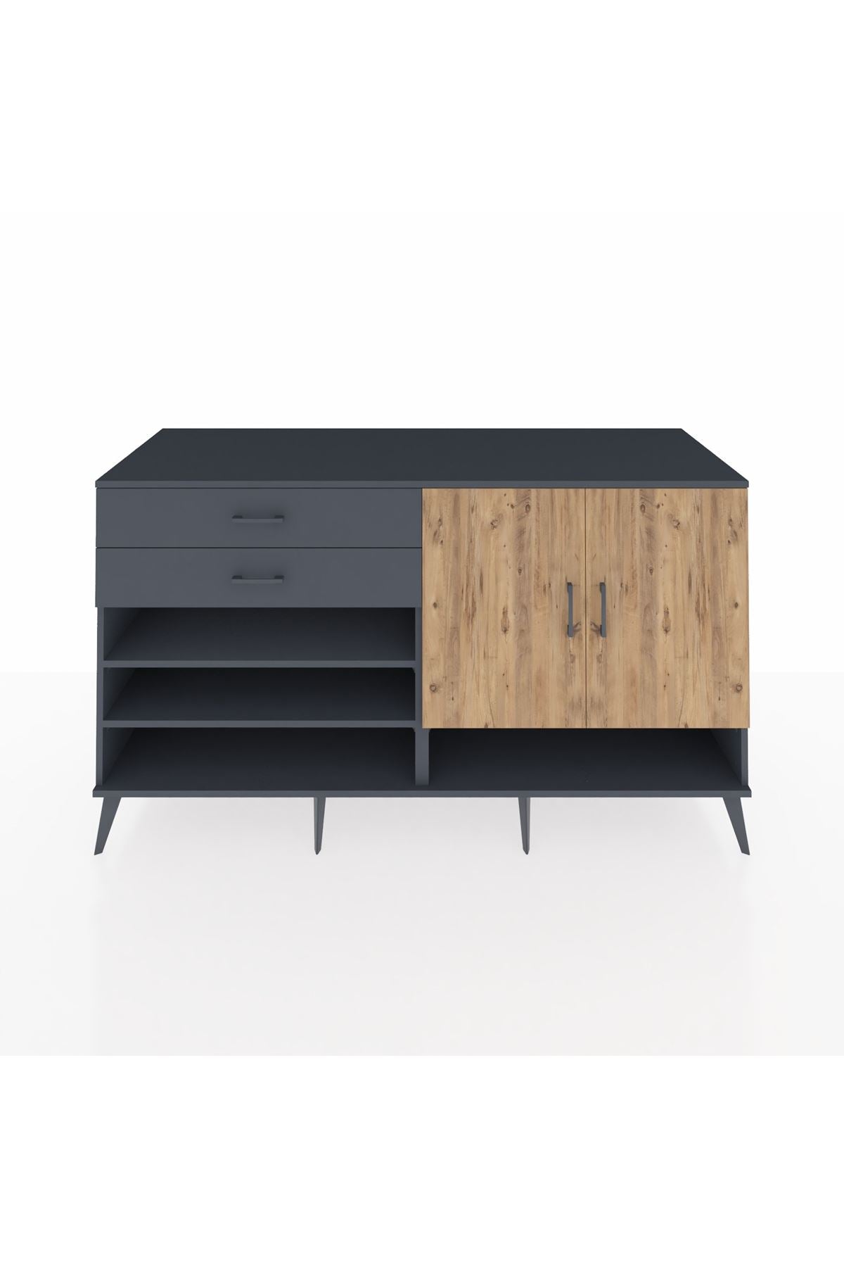 Kronos Konsol 4 Raflı 2 Çekmeceli 2 Kapaklı 176x59x99 Antrasit-Çam/Antrasit