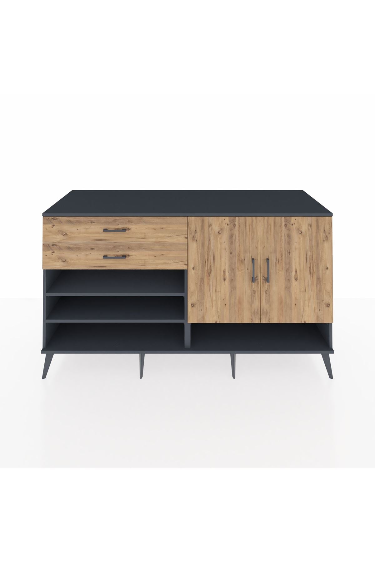 Kronos Konsol 4 Raflı 2 Çekmeceli 2 Kapaklı 176x59x99 Antrasit-Çam