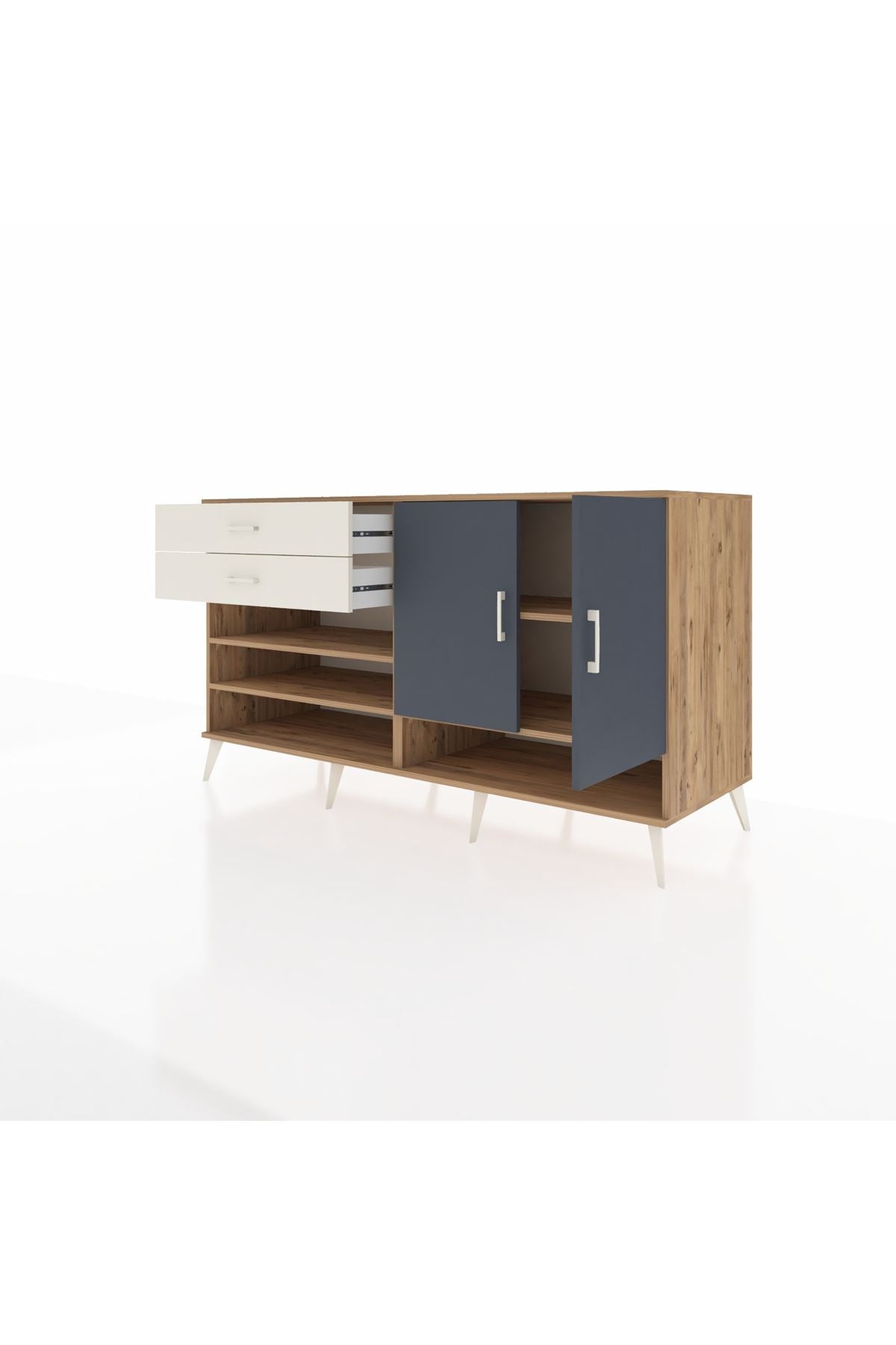 Kronos Konsol 4 Raflı 2 Çekmeceli 2 Kapaklı 176x59x99 Çam-Antrasit/Aytaşı