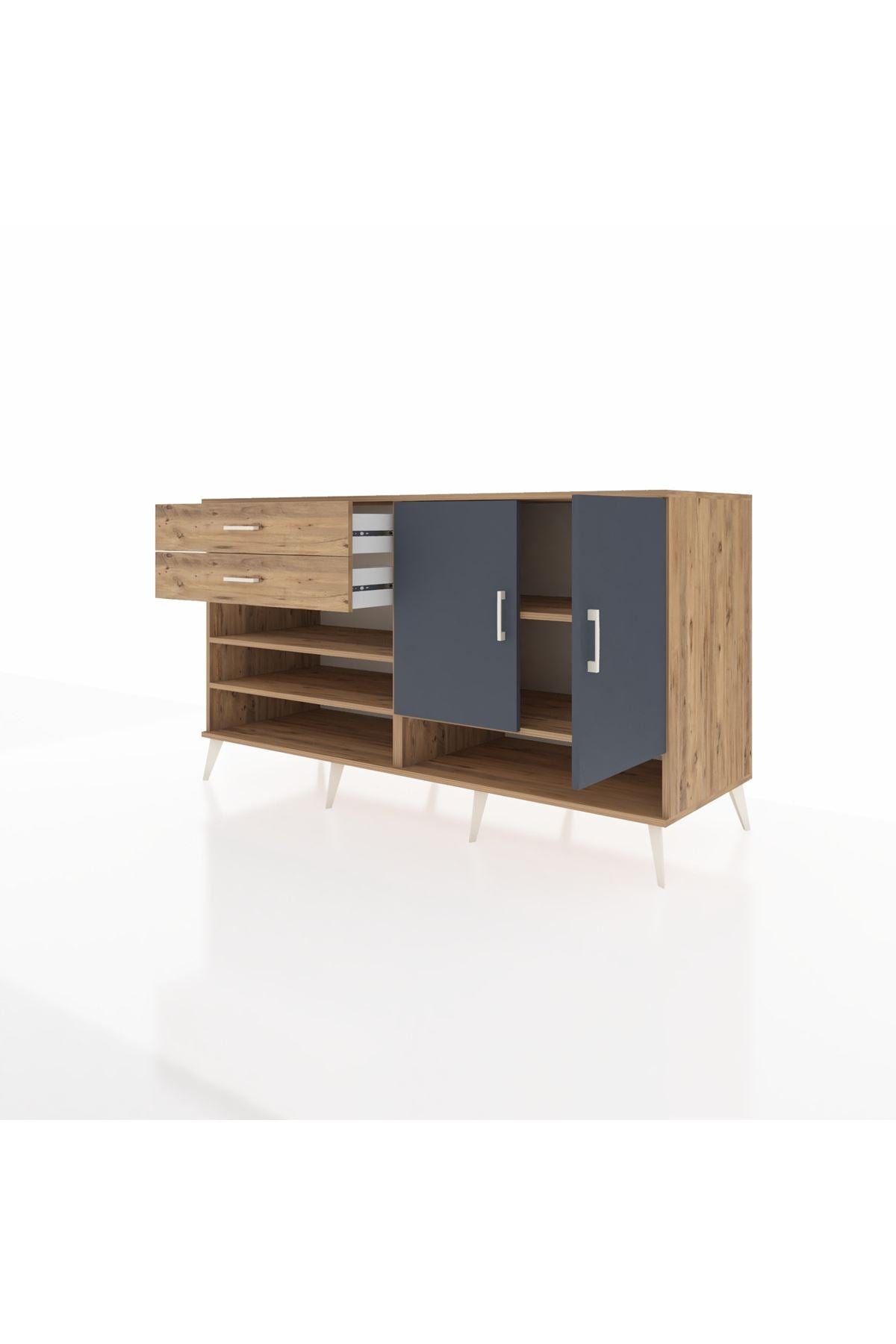 Kronos Konsol 4 Raflı 2 Çekmeceli 2 Kapaklı 176x59x99 Çam-Antrasit/Çam