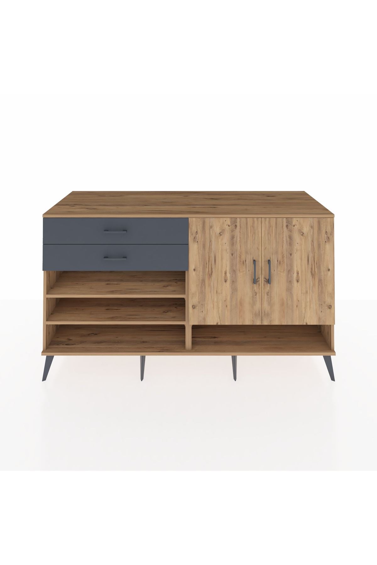 Kronos Konsol 4 Raflı 2 Çekmeceli 2 Kapaklı 176x59x99 Çam-Çam/Antrasit