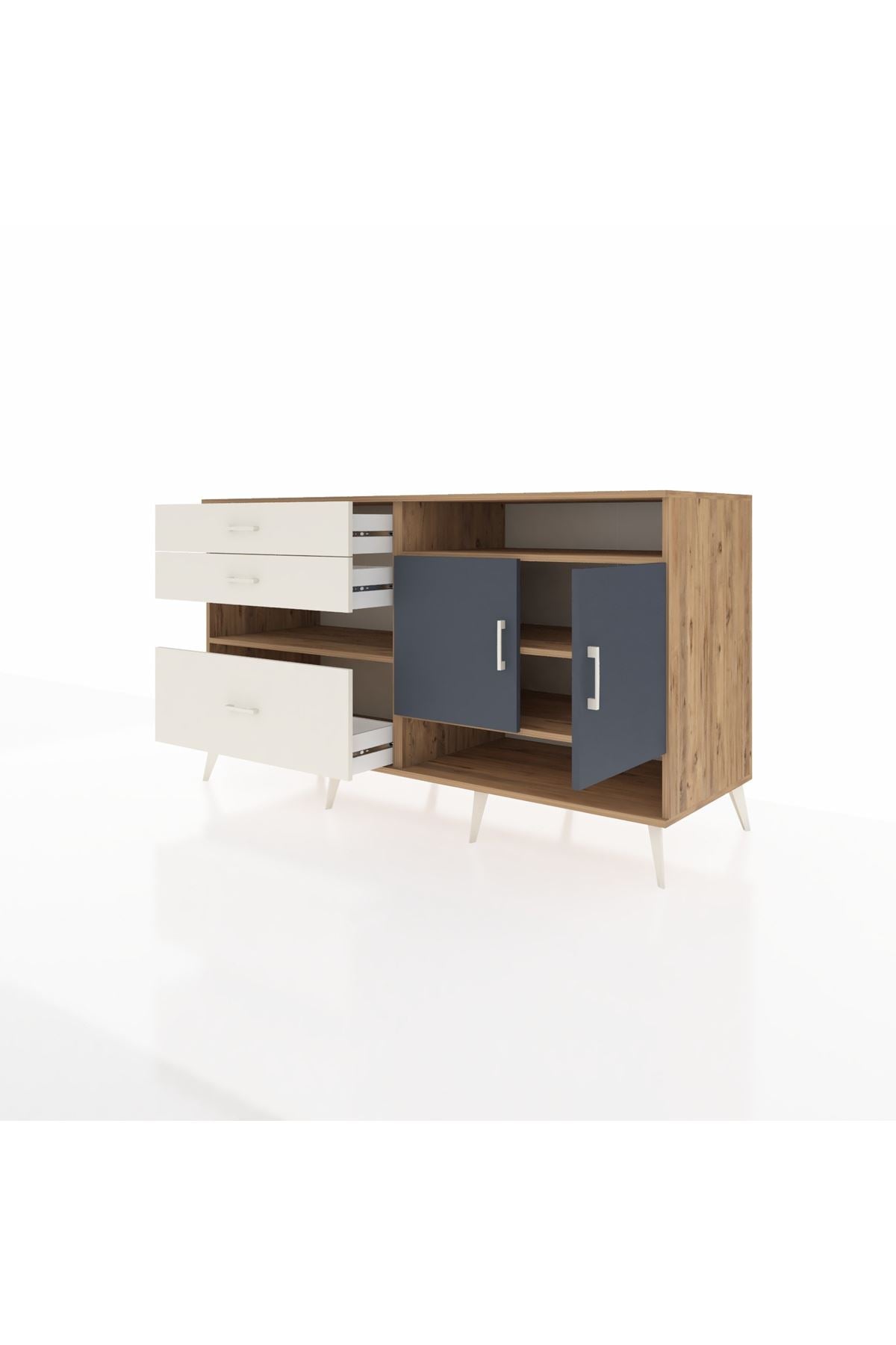 Kronos Konsol 4 Raflı 3 Çekmeceli 2 Kapaklı 176x59x99 Çam-Antrasit/Aytaşı
