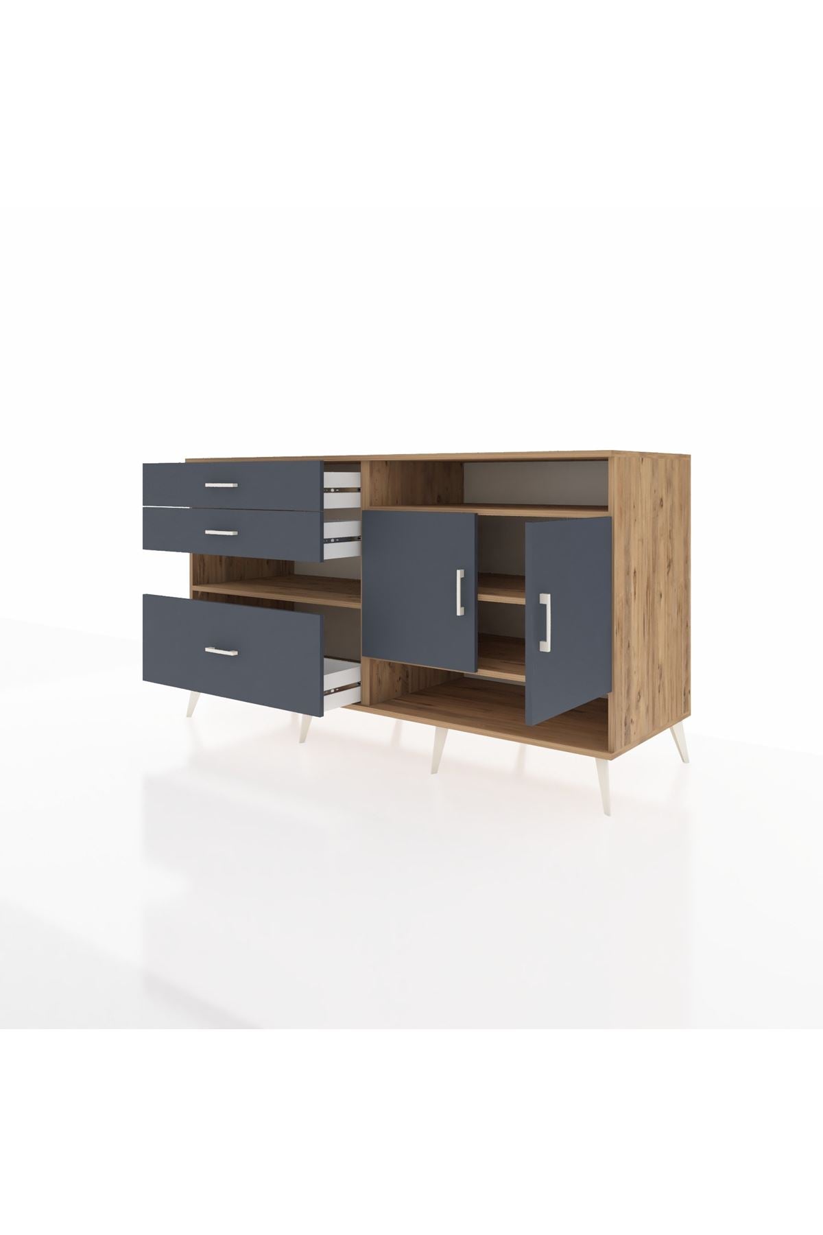Kronos Konsol 4 Raflı 3 Çekmeceli 2 Kapaklı 176x59x99 Çam-Antrasit