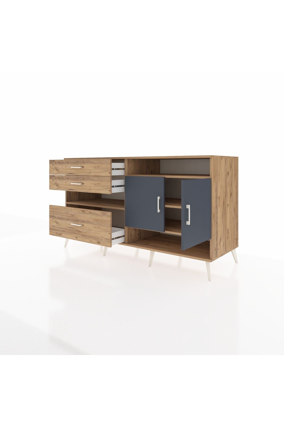 Kronos Konsol 4 Raflı 3 Çekmeceli 2 Kapaklı 176x59x99 Çam-Antrasit/Çam