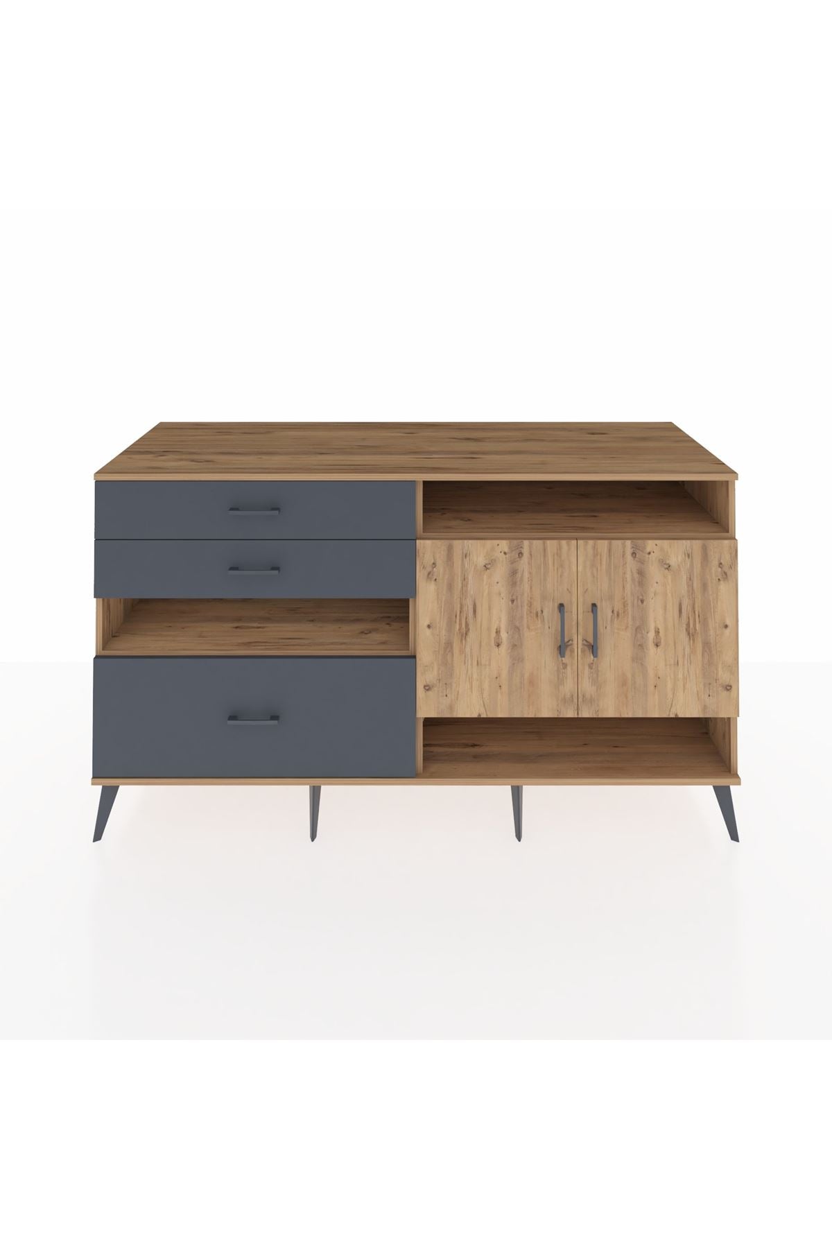 Kronos Konsol 4 Raflı 3 Çekmeceli 2 Kapaklı 176x59x99 Çam-Çam/Antrasit