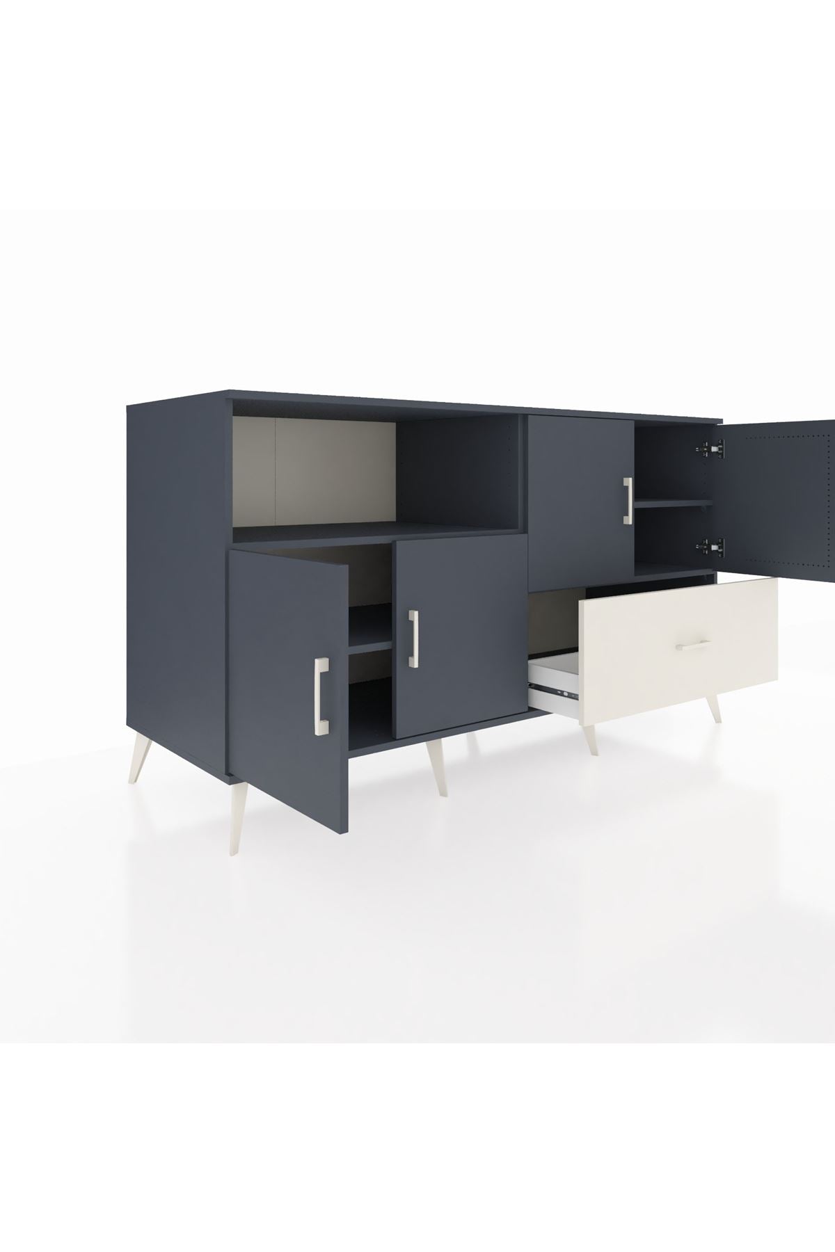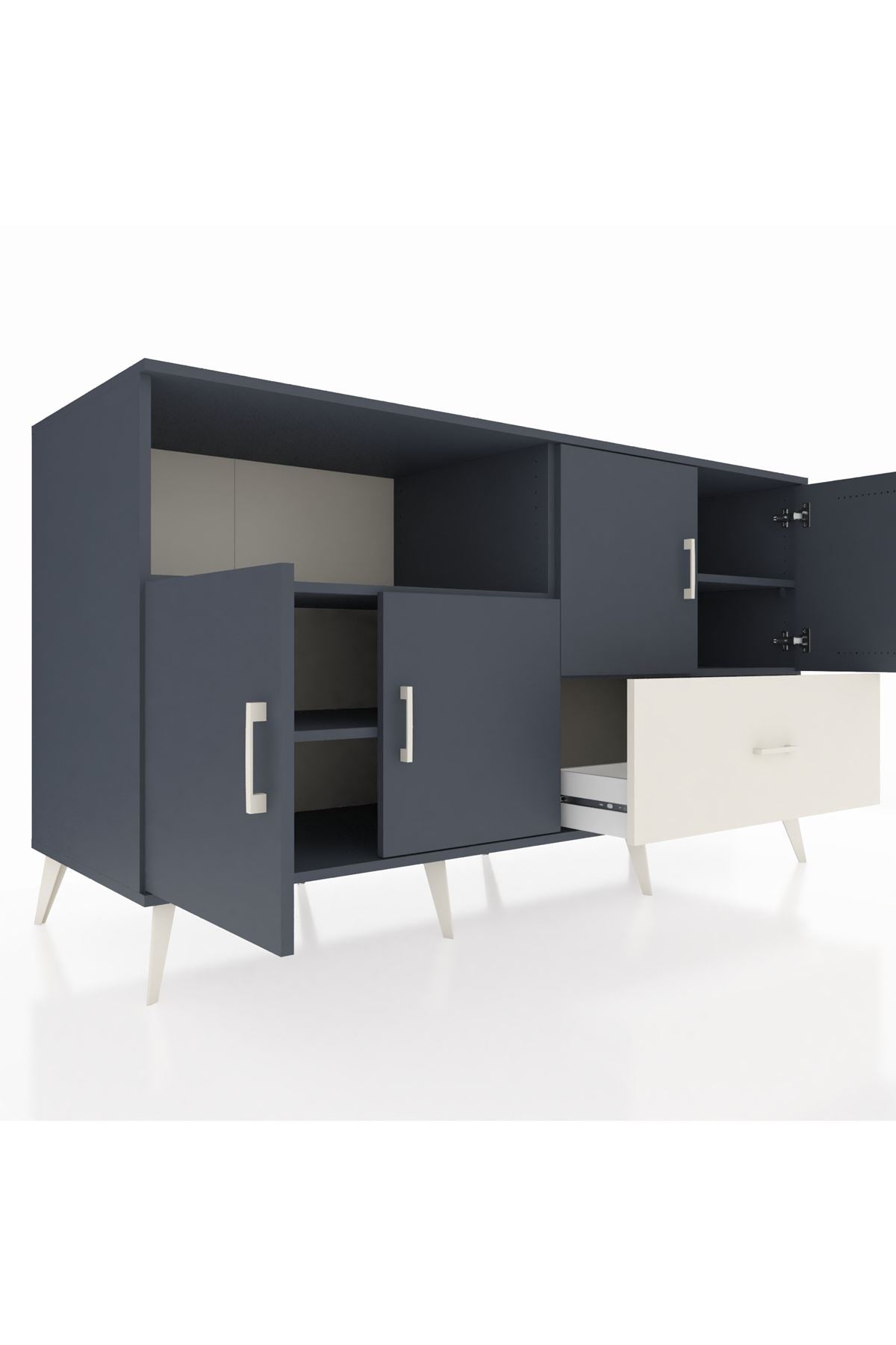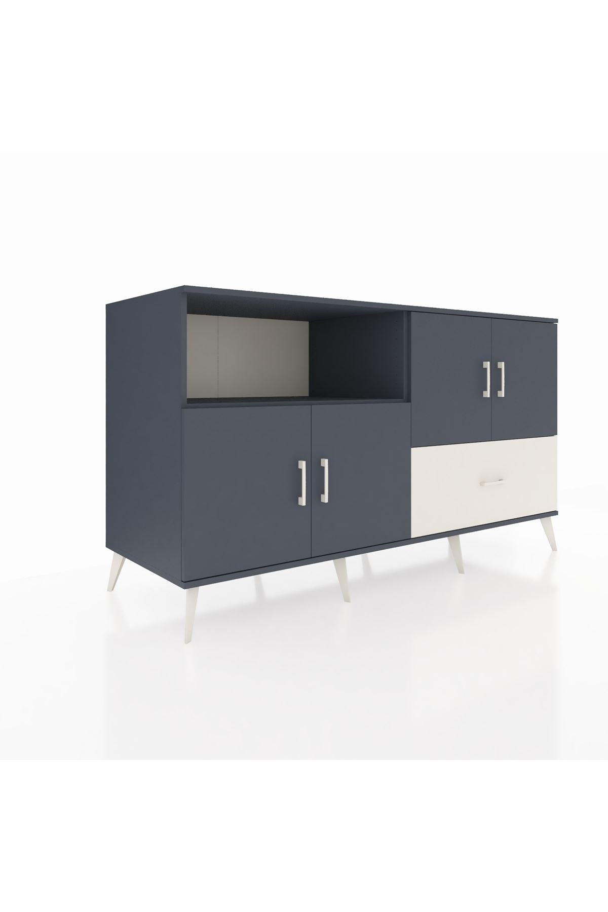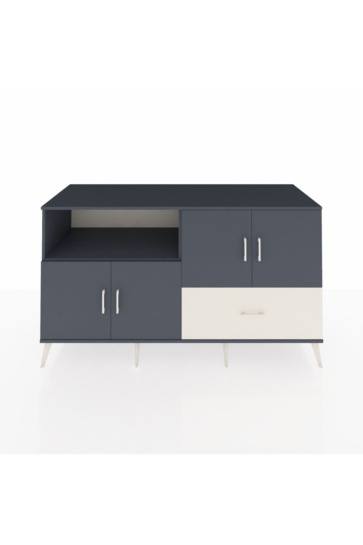 Kronos Konsol 4 Raflı Tek Çekmeceli 4 Kapaklı 176x59x99 Antrasit-Antrasit/Aytaşı