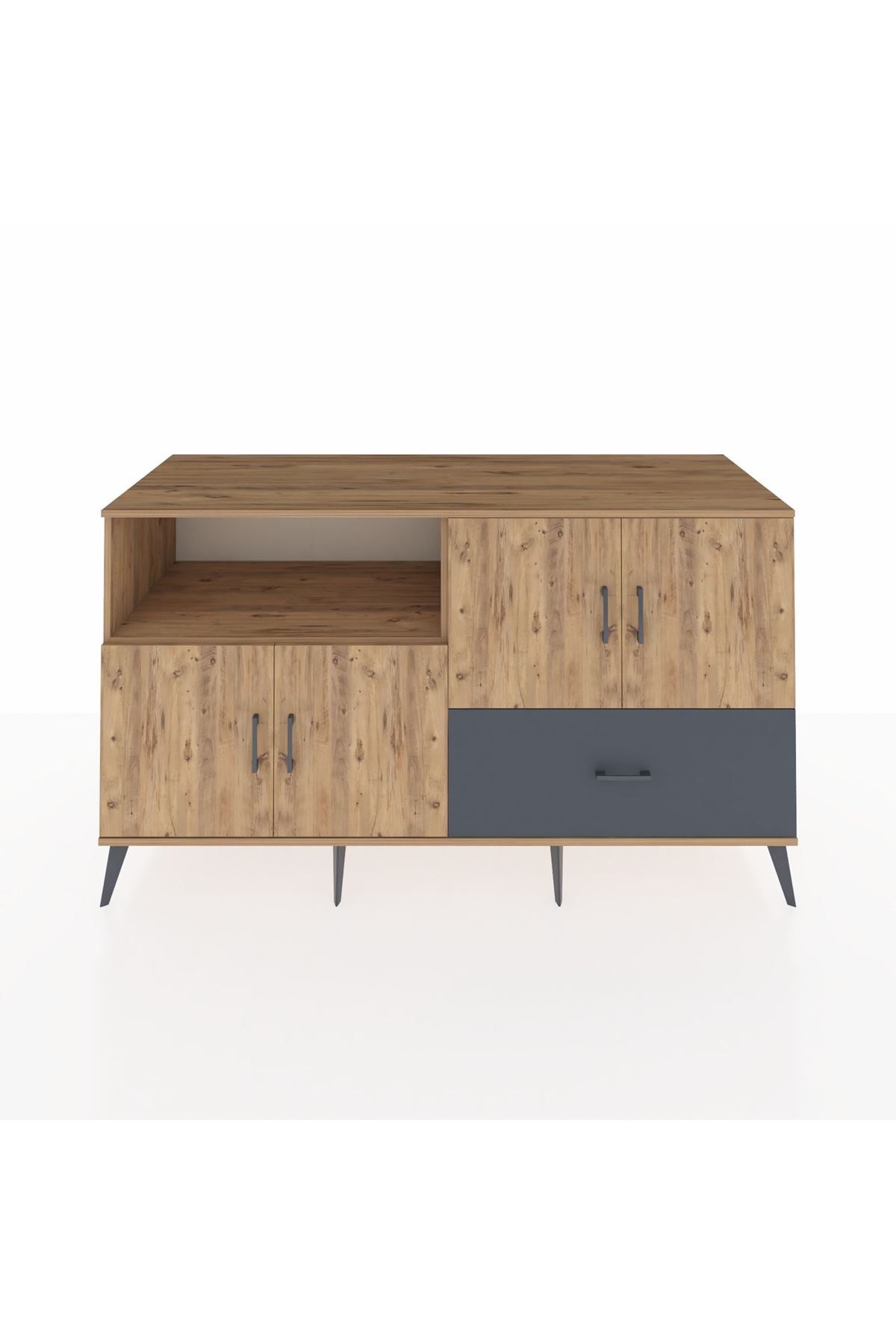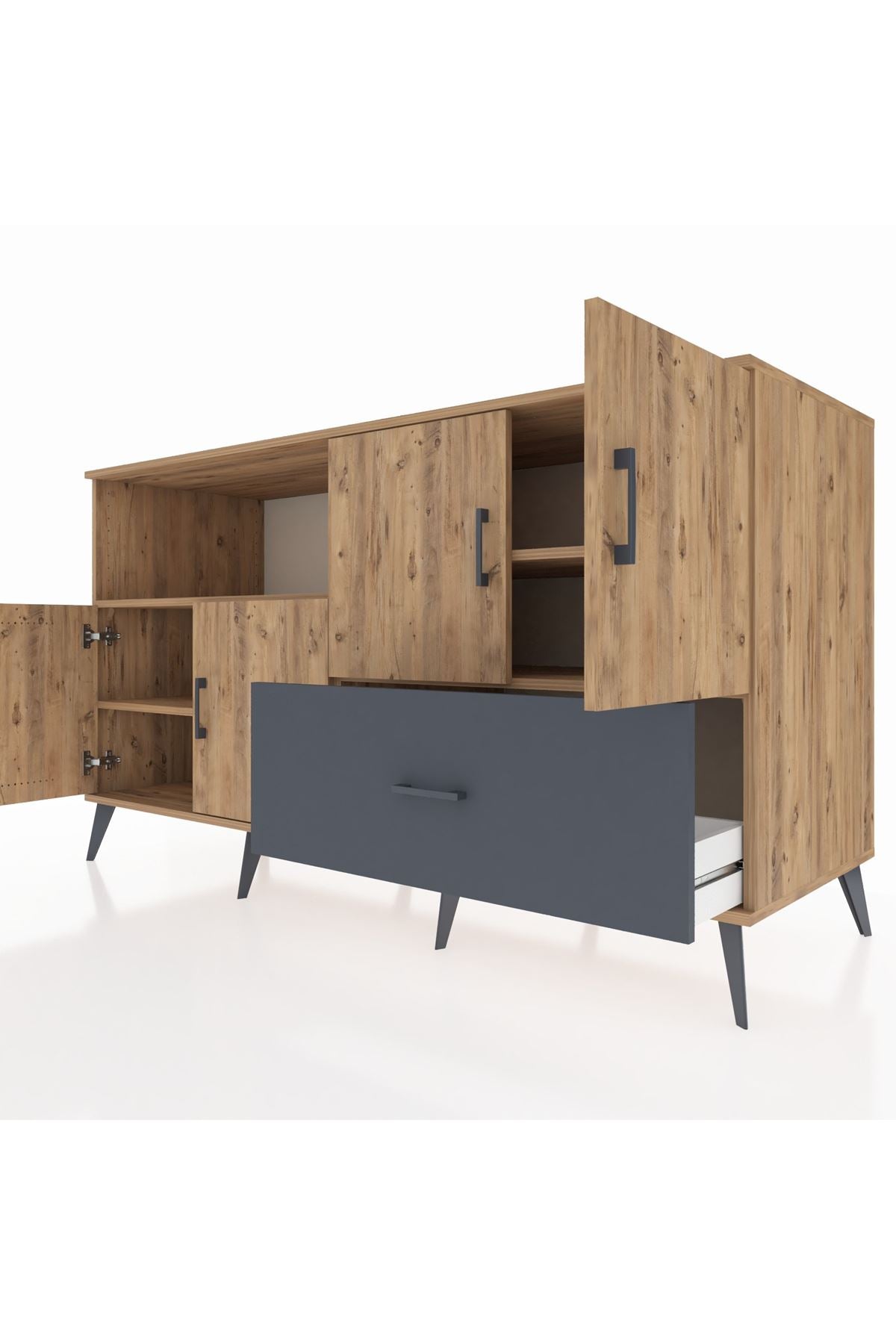 Kronos Konsol 4 Raflı Tek Çekmeceli 4 Kapaklı 176x59x99 Çam-Çam/Antrasit