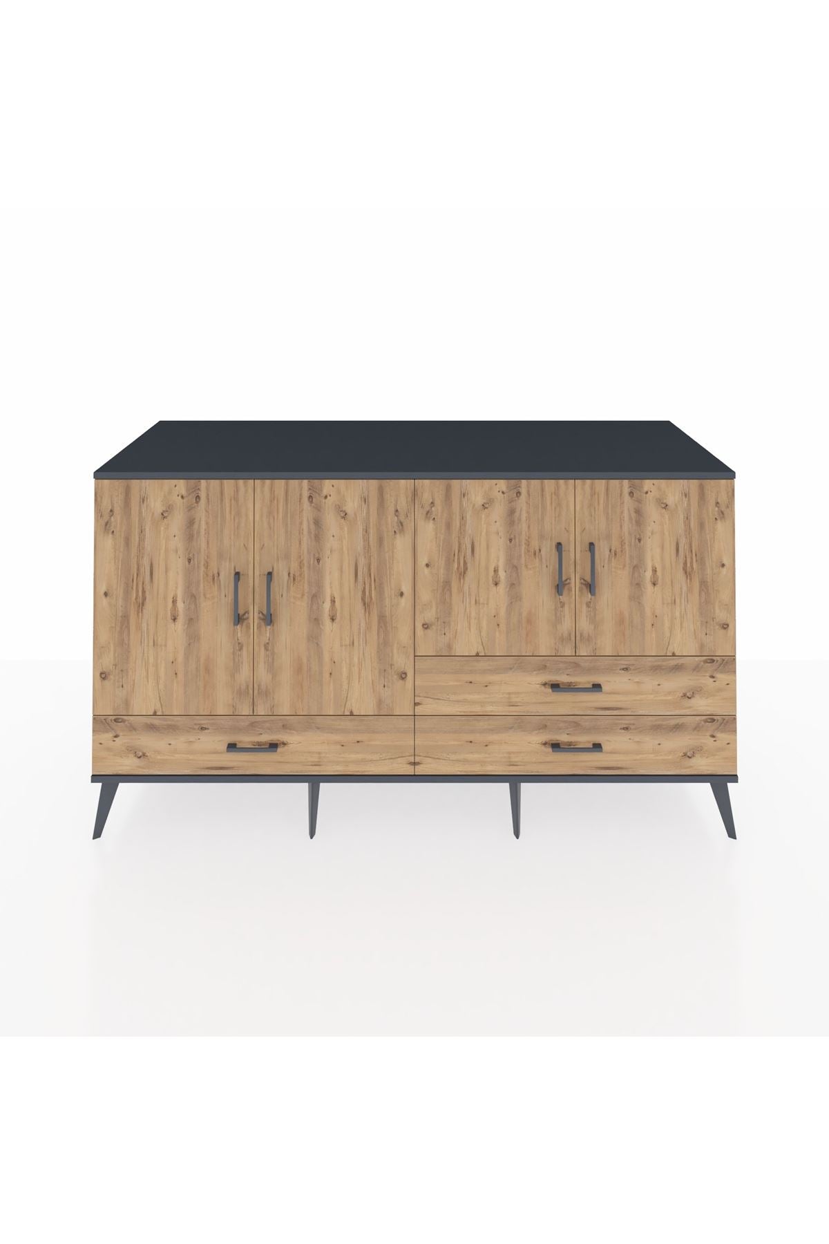 Kronos Konsol 5 Raflı 3 Çekmeceli 4 Kapaklı 176x59x99 Antrasit-Çam