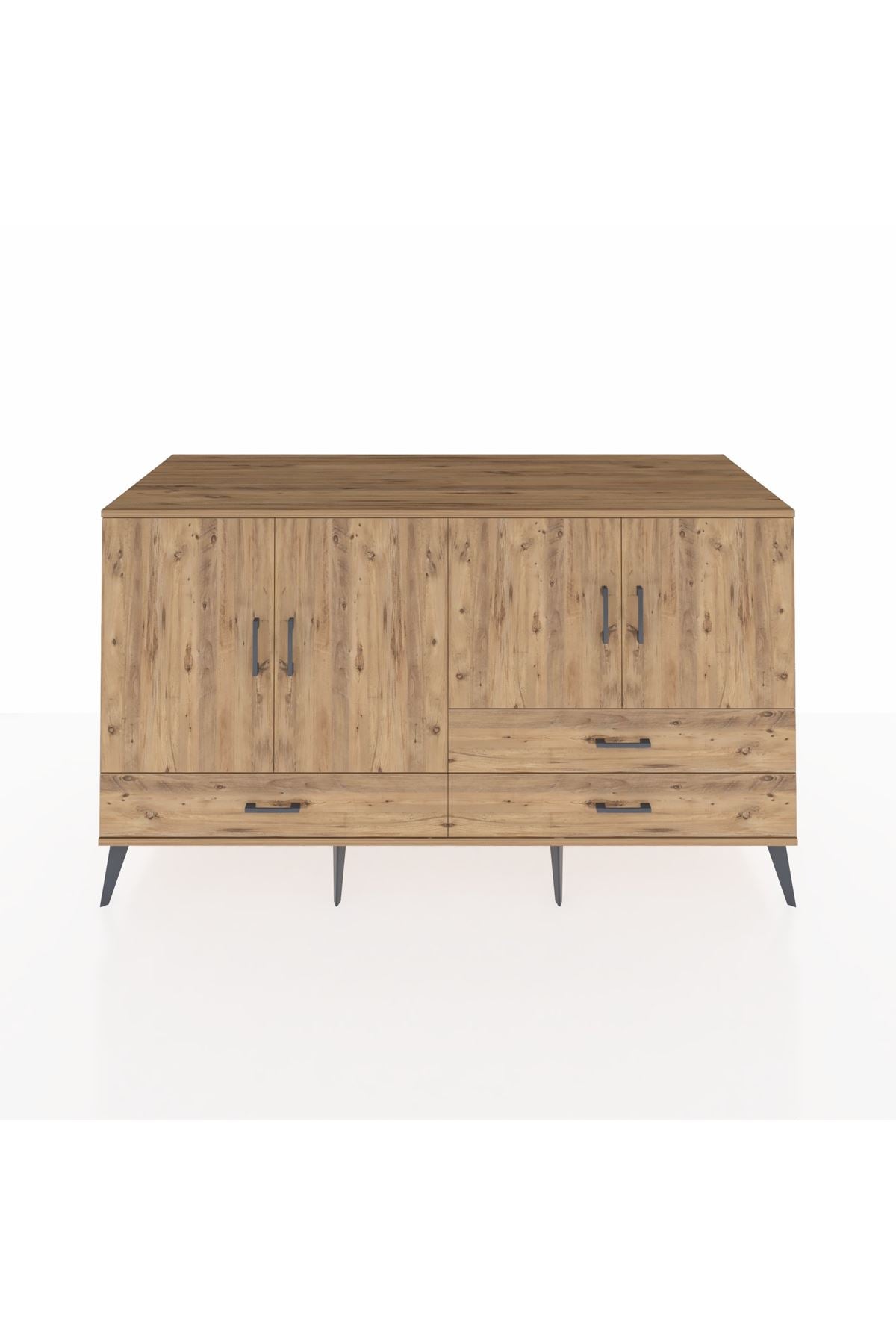 Kronos Konsol 5 Raflı 3 Çekmeceli 4 Kapaklı 176x59x99 Çam-Çam