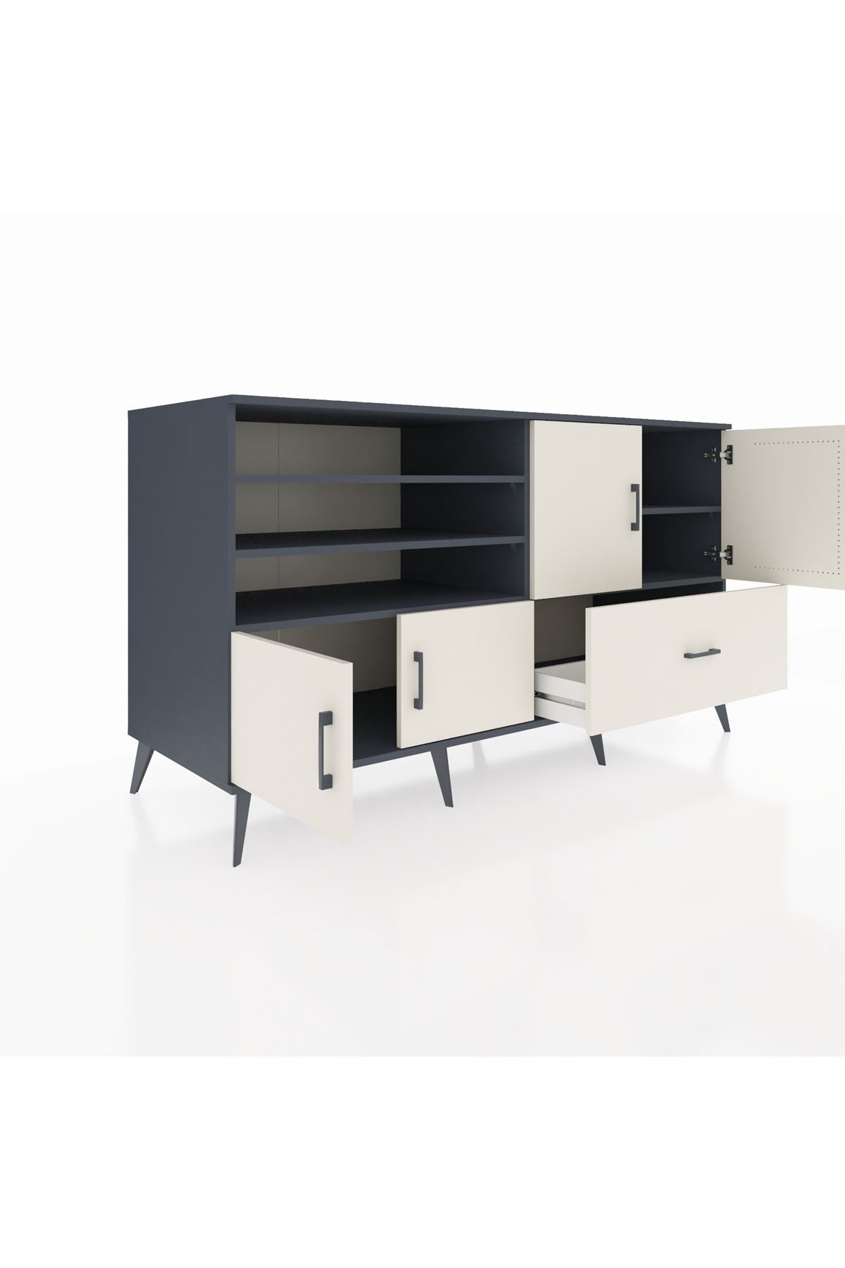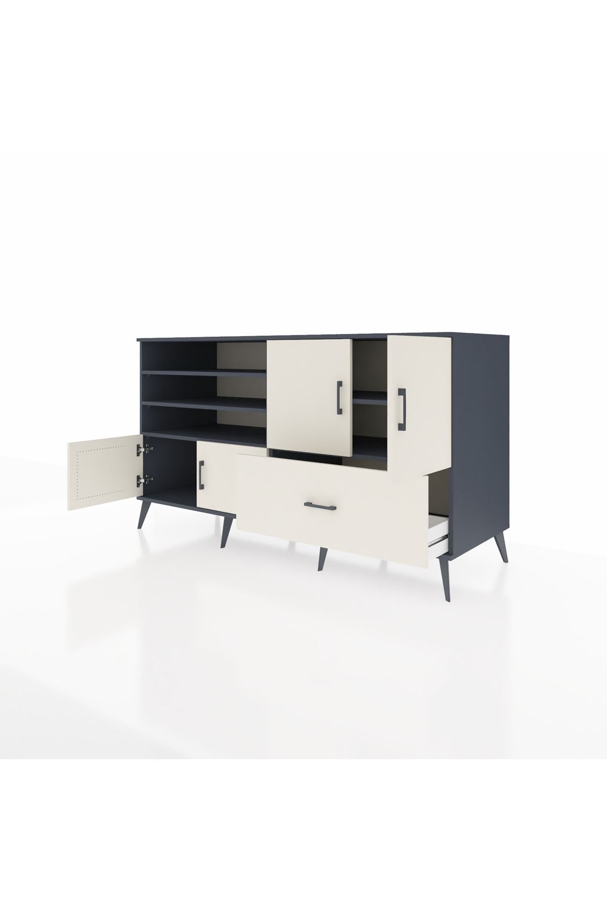 Kronos Konsol 5 Raflı Tek Çekmeceli 4 Kapaklı 176x59x99 Antrasit-Aytaşı