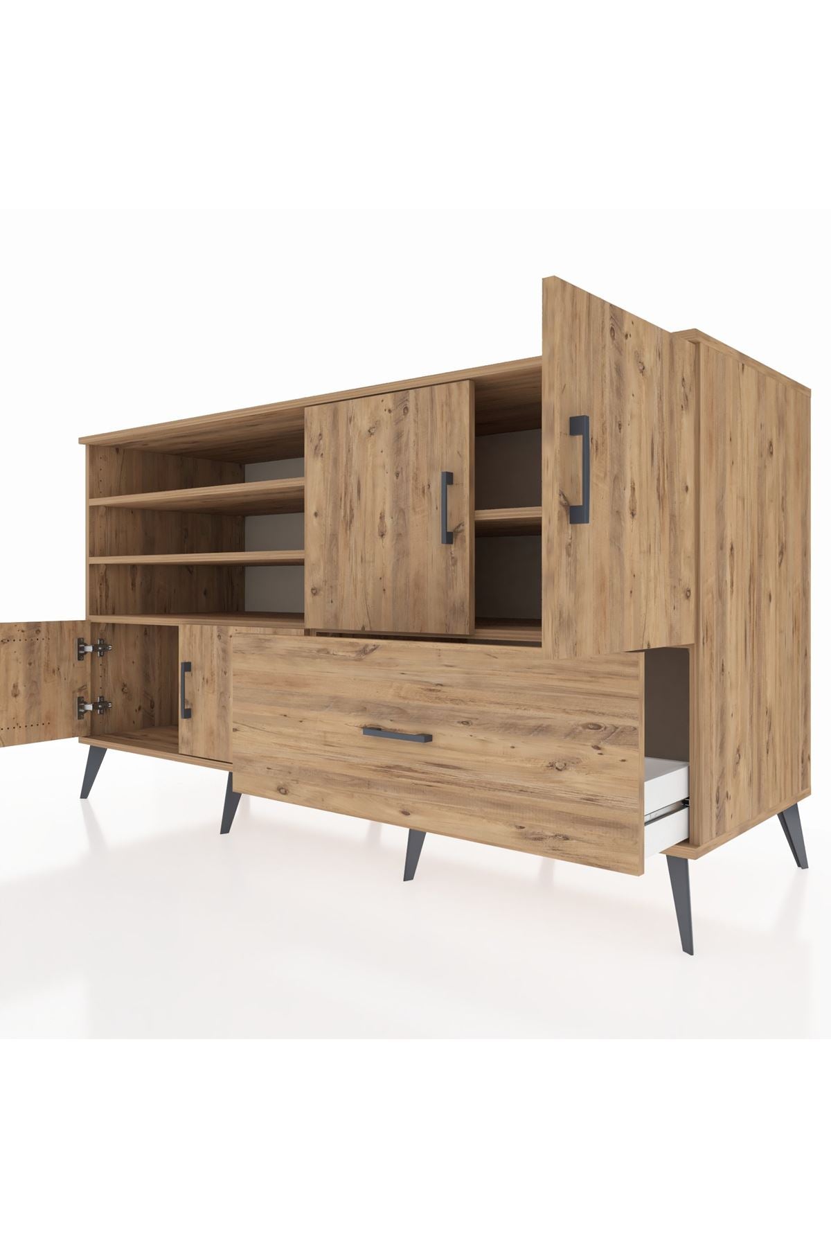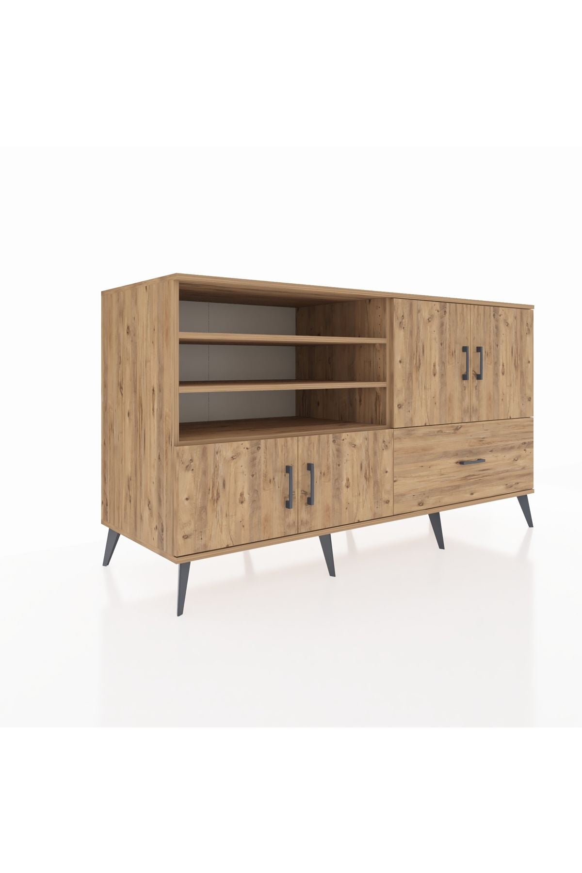 Kronos Konsol 5 Raflı Tek Çekmeceli 4 Kapaklı 176x59x99 Çam-Çam