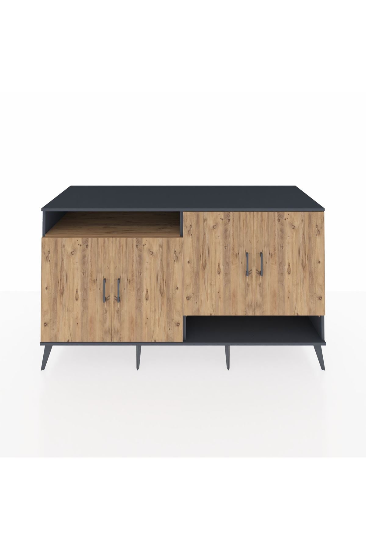 Kronos Konsol 6 Raflı 4 Kapaklı 176x59x99 Antrasit-Çam