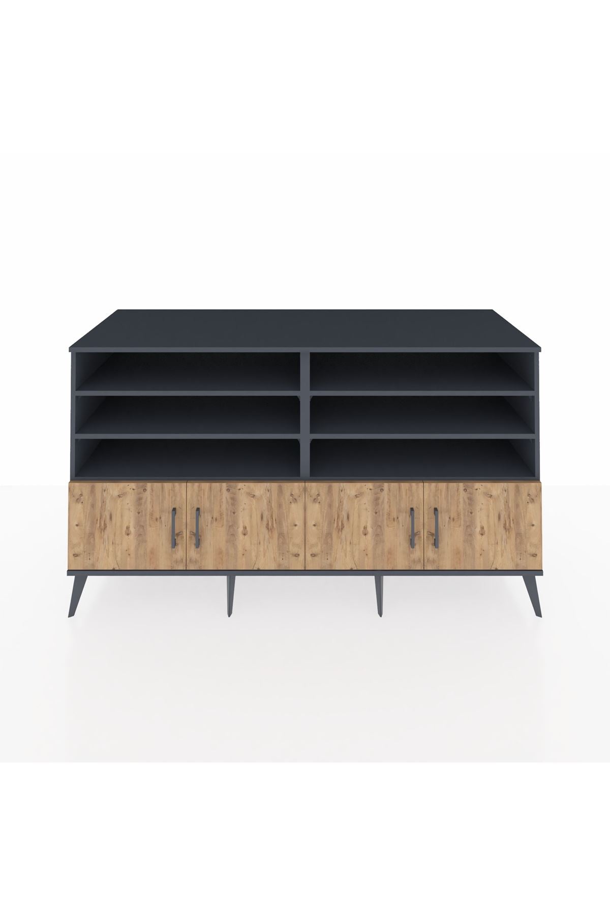 Kronos Konsol 6 Raflı 4 Kapaklı 176x59x99 Antrasit-Çam/Antrasit