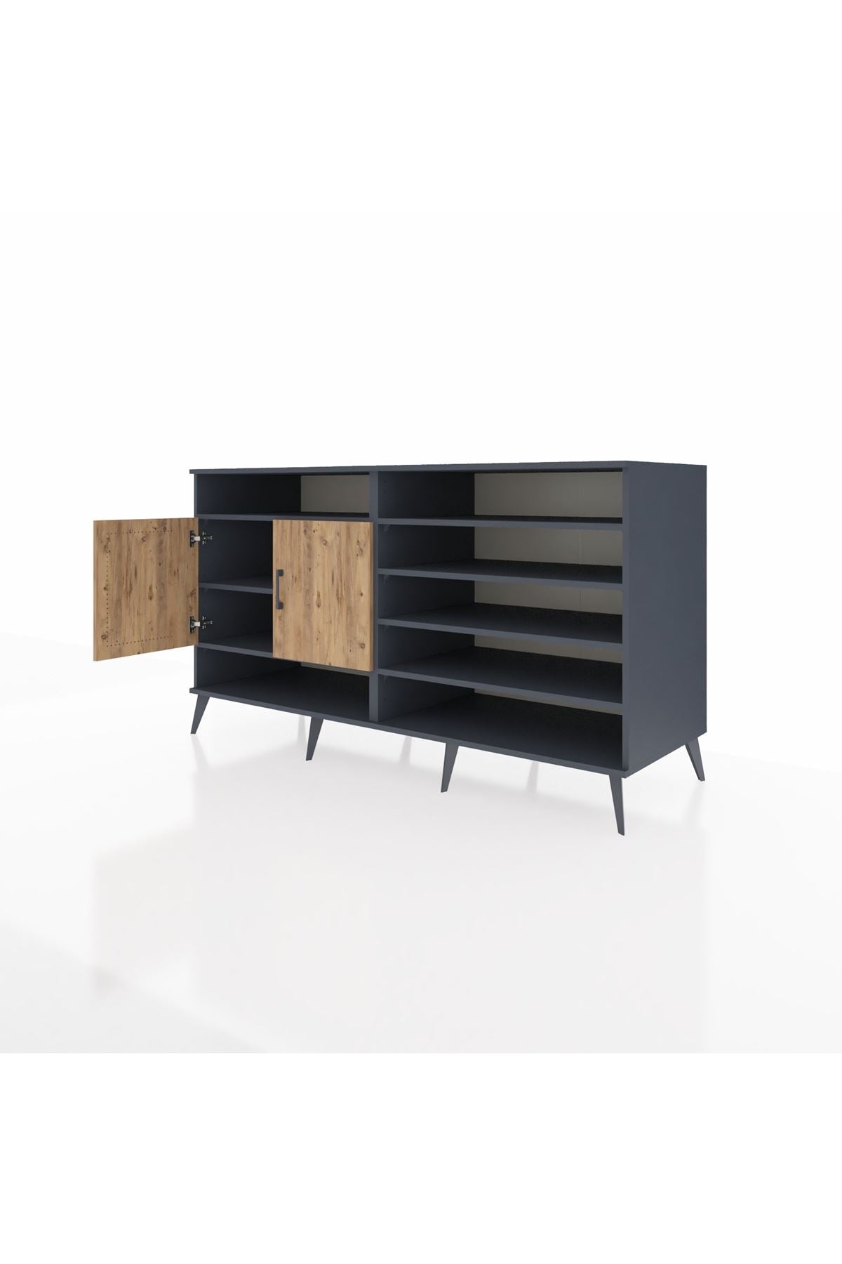 Kronos Konsol 7 Raflı 2 Kapaklı 176x59x99 Antrasit-Çam/Antrasit