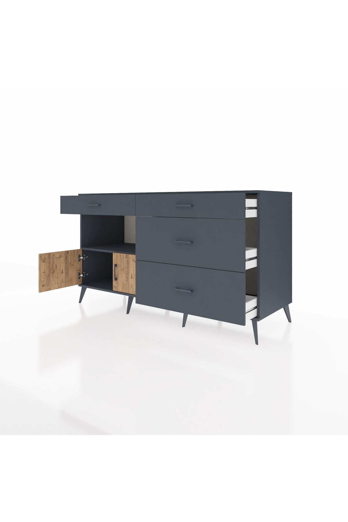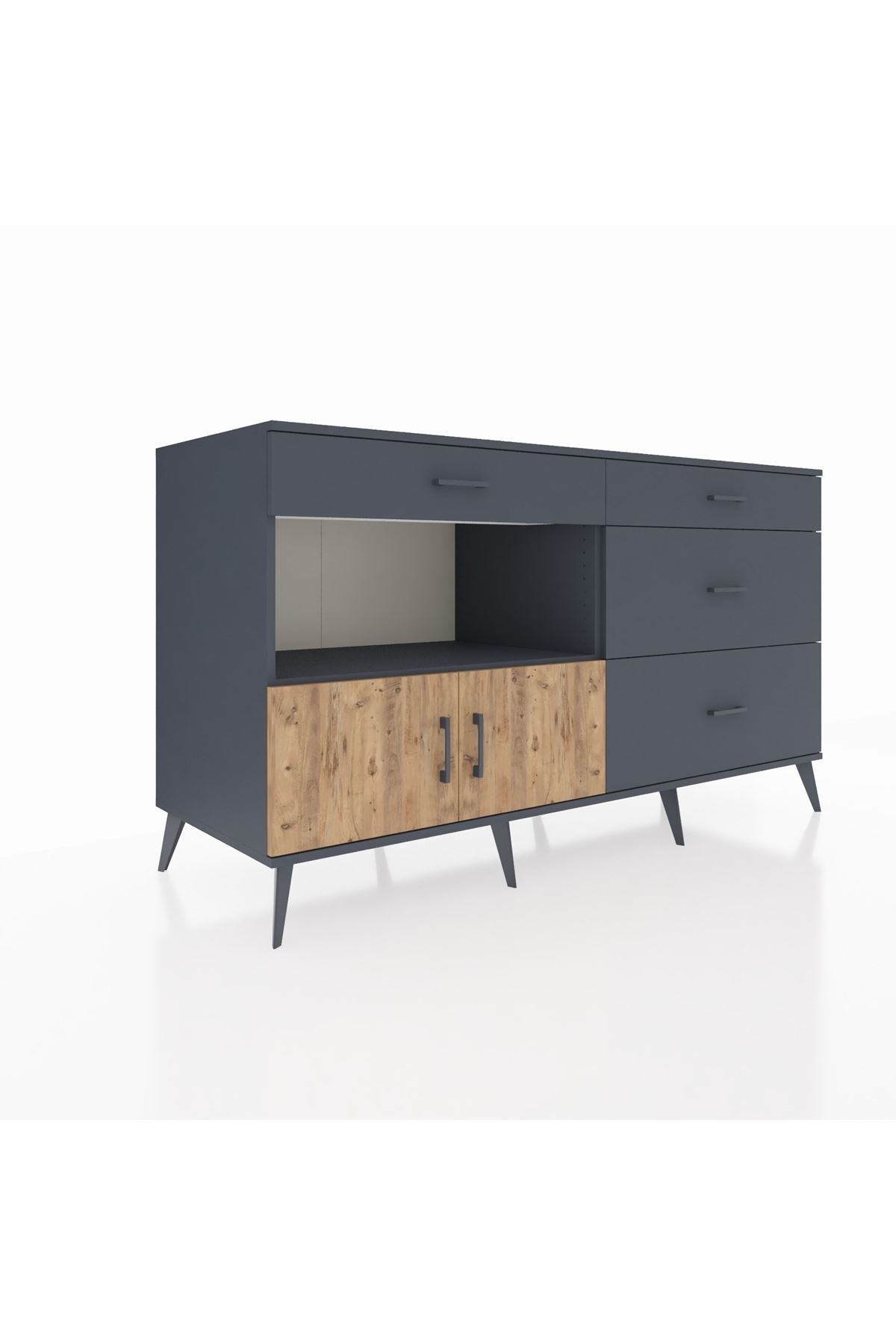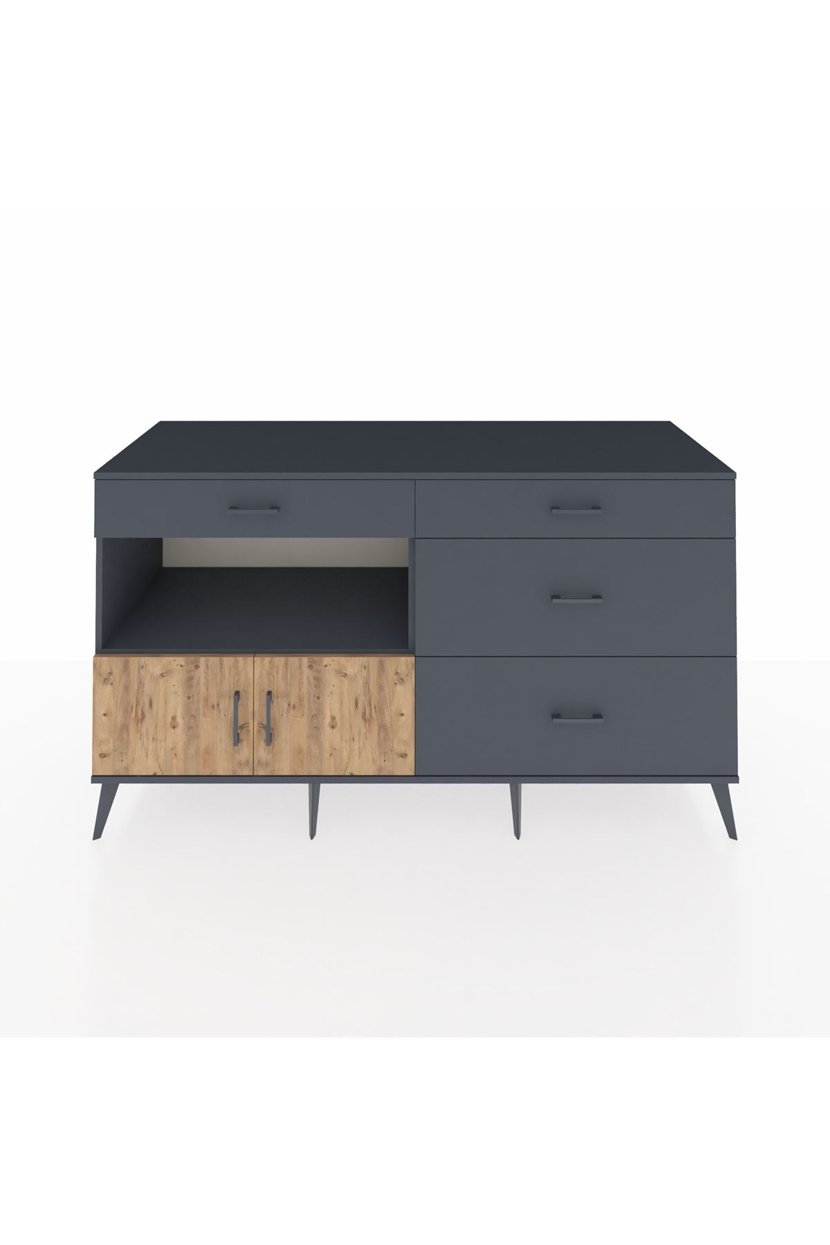 Kronos Konsol Tek Raflı 4 Çekmeceli 2 Kapaklı 176x59x99 Antrasit-Çam/Antrasit