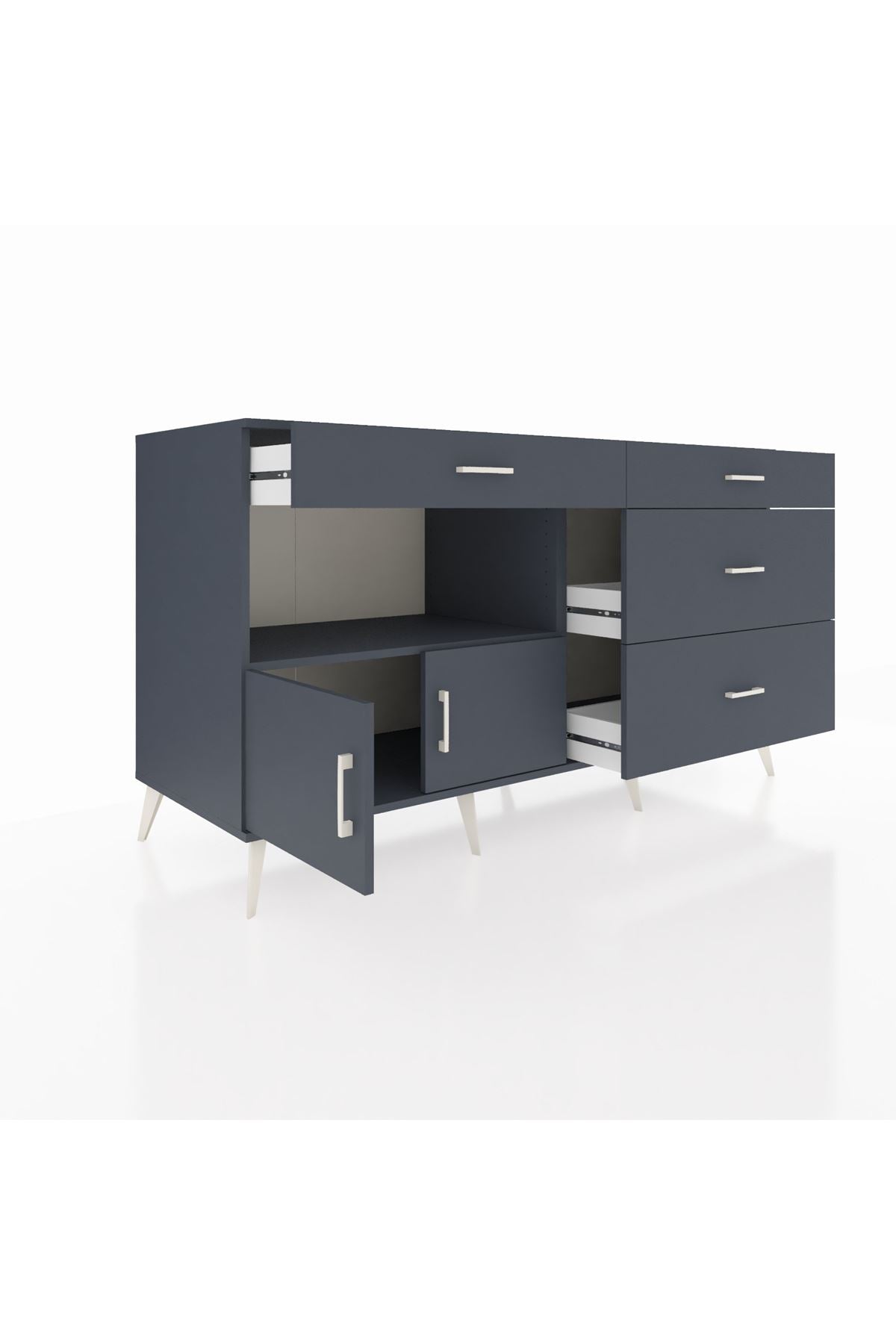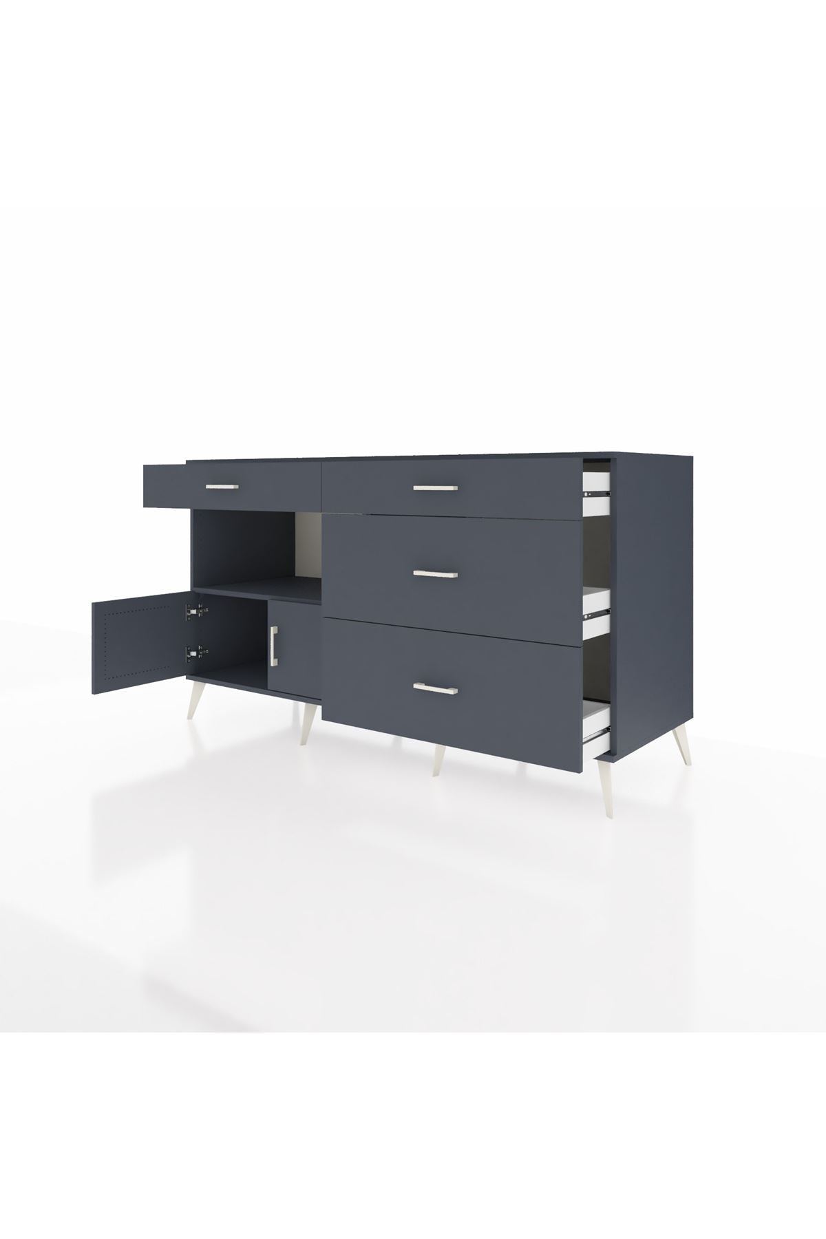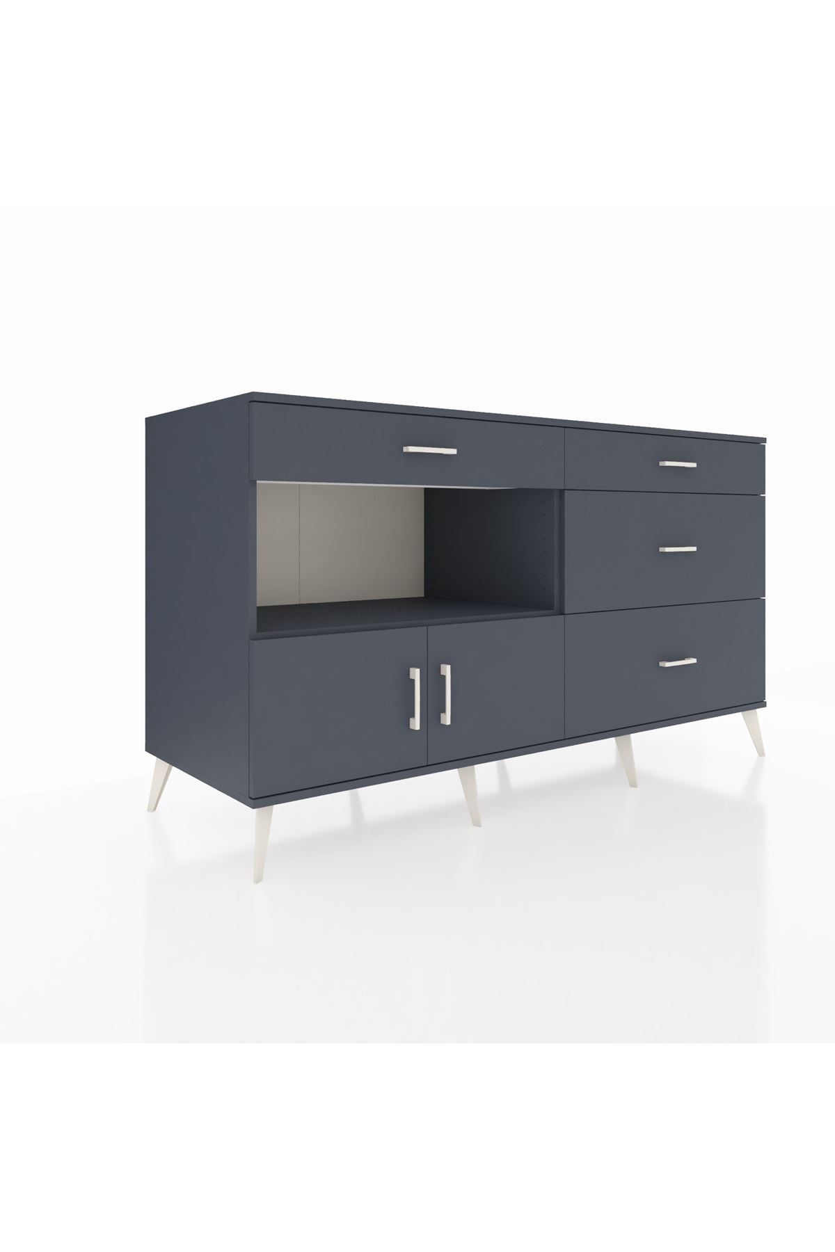 Kronos Konsol Tek Raflı 4 Çekmeceli 2 Kapaklı 176x59x99 Antrasit-Antrasit