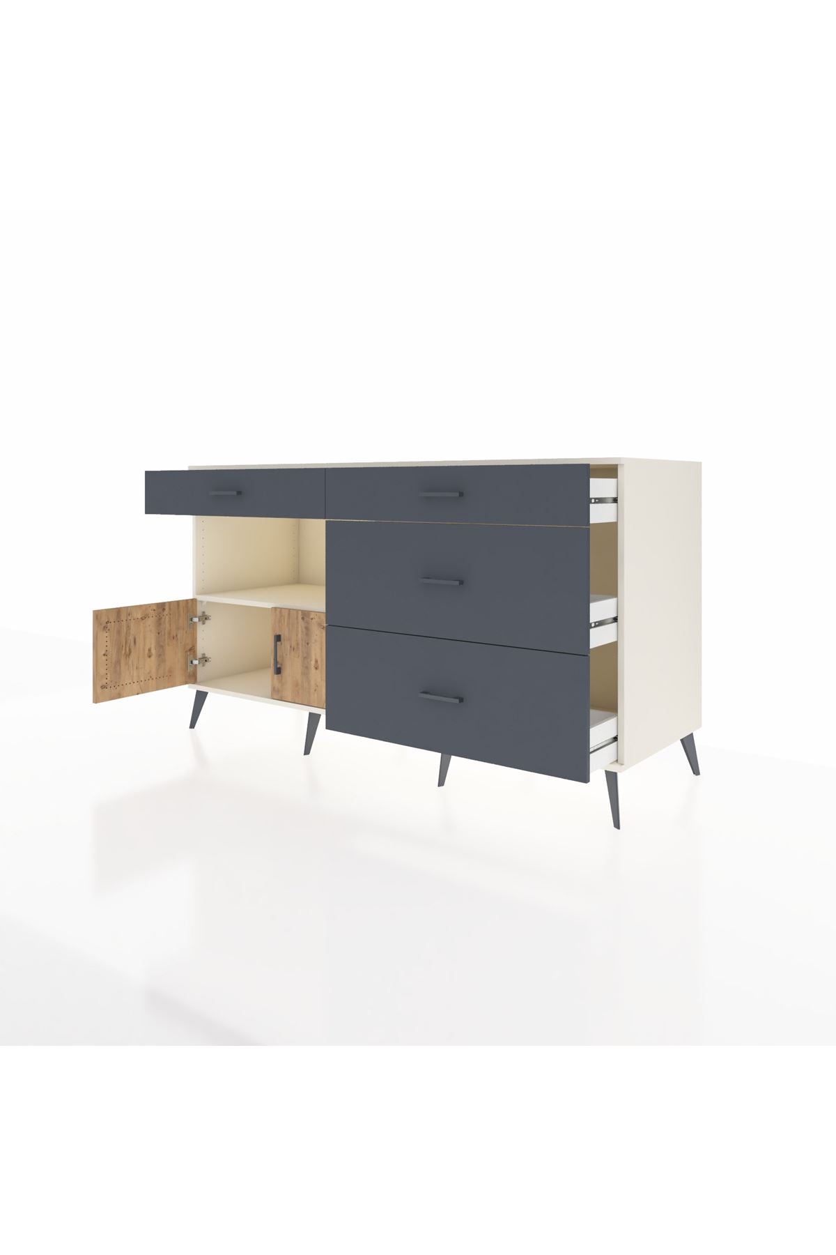 Kronos Konsol Tek Raflı 4 Çekmeceli 2 Kapaklı 176x59x99 Aytaşı-Çam/Antrasit