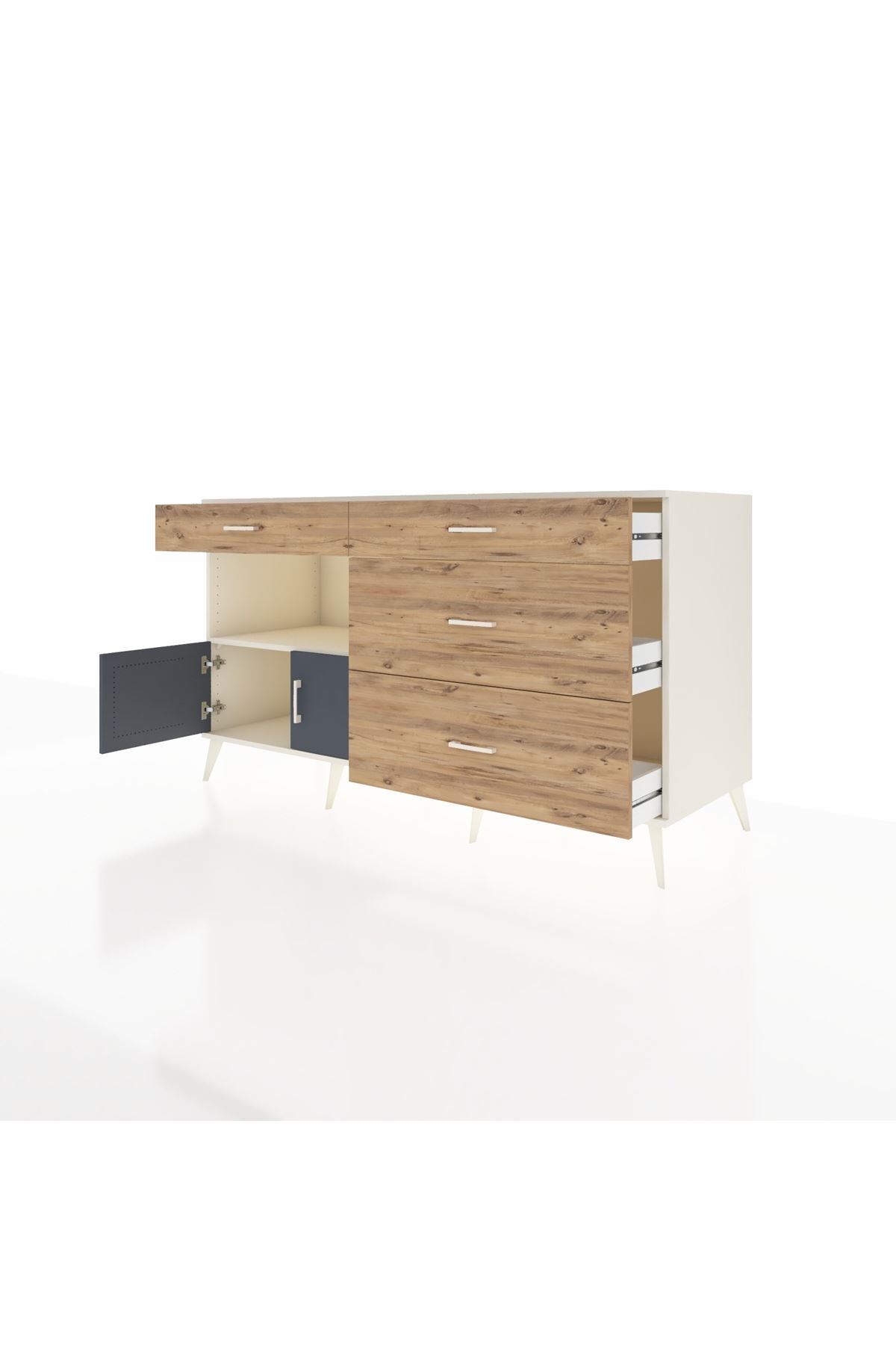 Kronos Konsol Tek Raflı 4 Çekmeceli 2 Kapaklı 176x59x99 Aytaşı-Antrasit/Çam