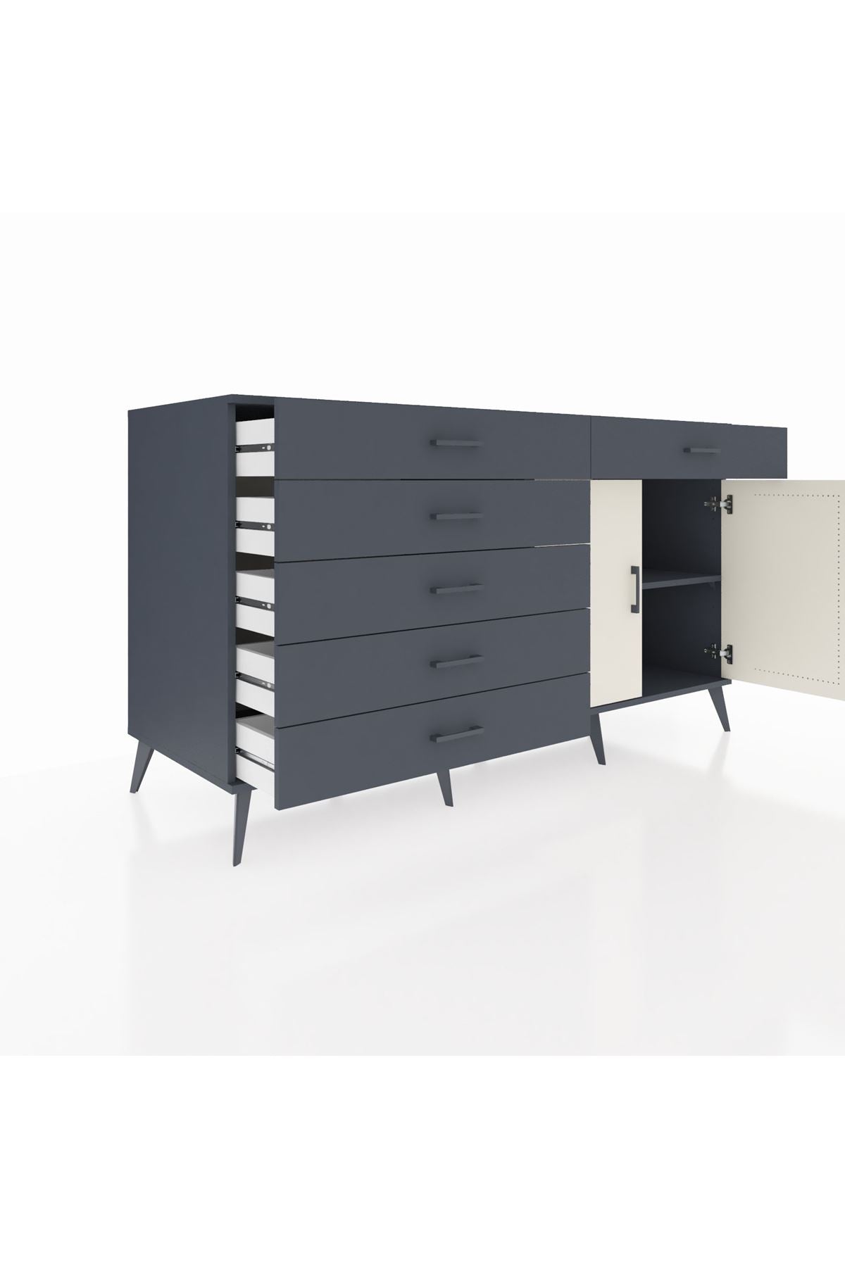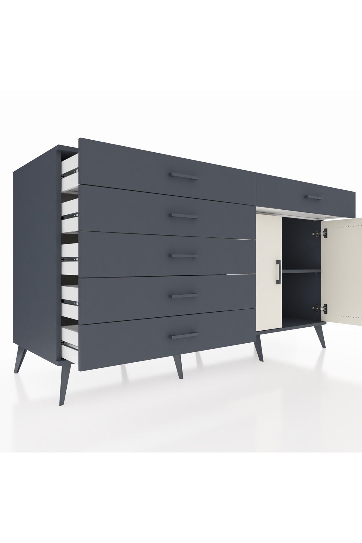 Kronos Konsol Tek Raflı 6 Çekmeceli 2 Kapaklı 176x59x99 Antrasit-Aytaşı/Antrasit