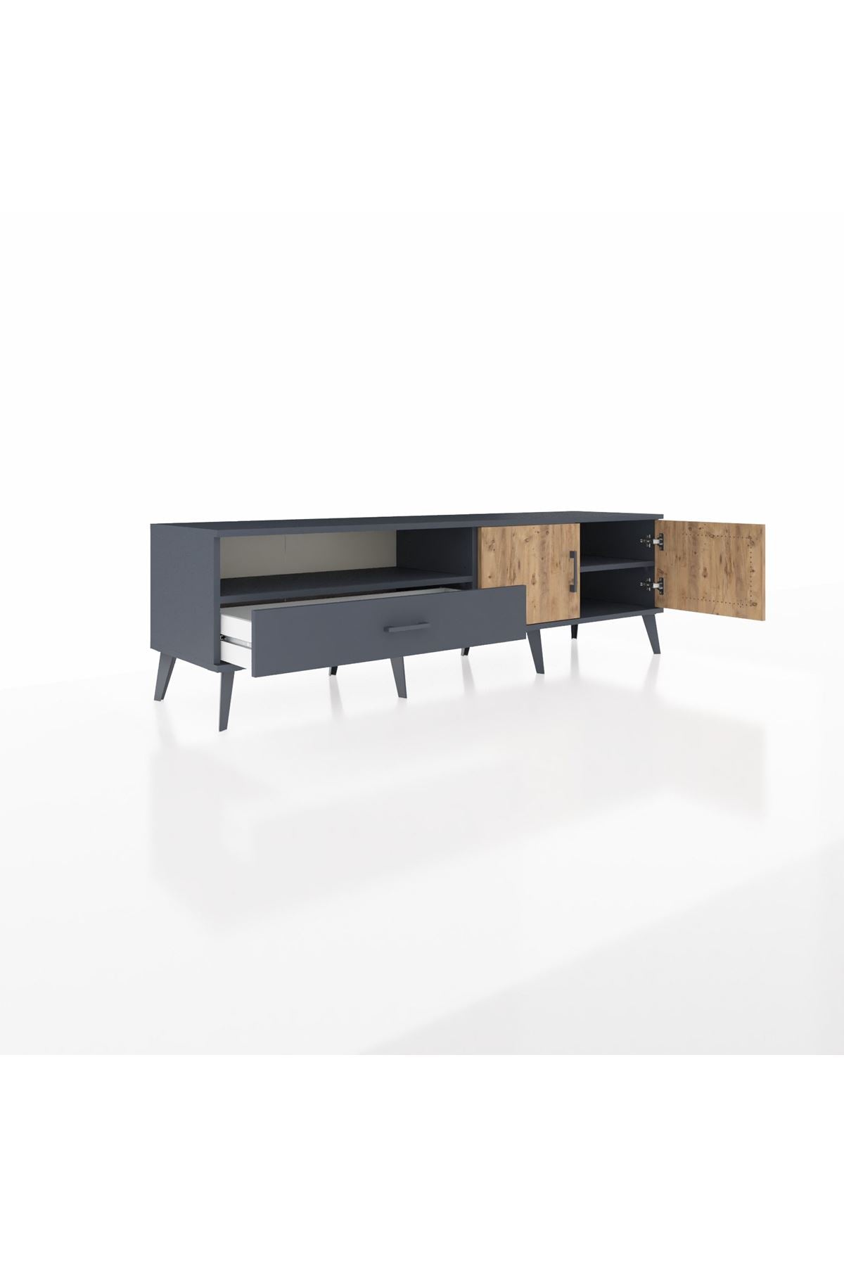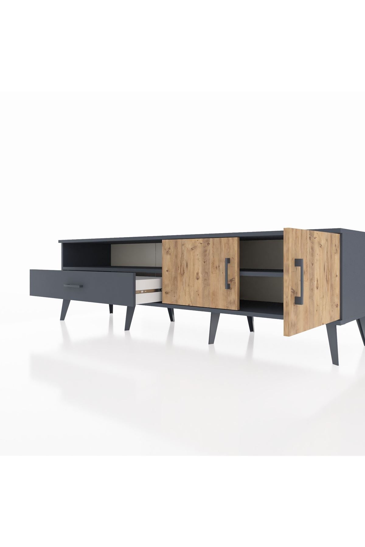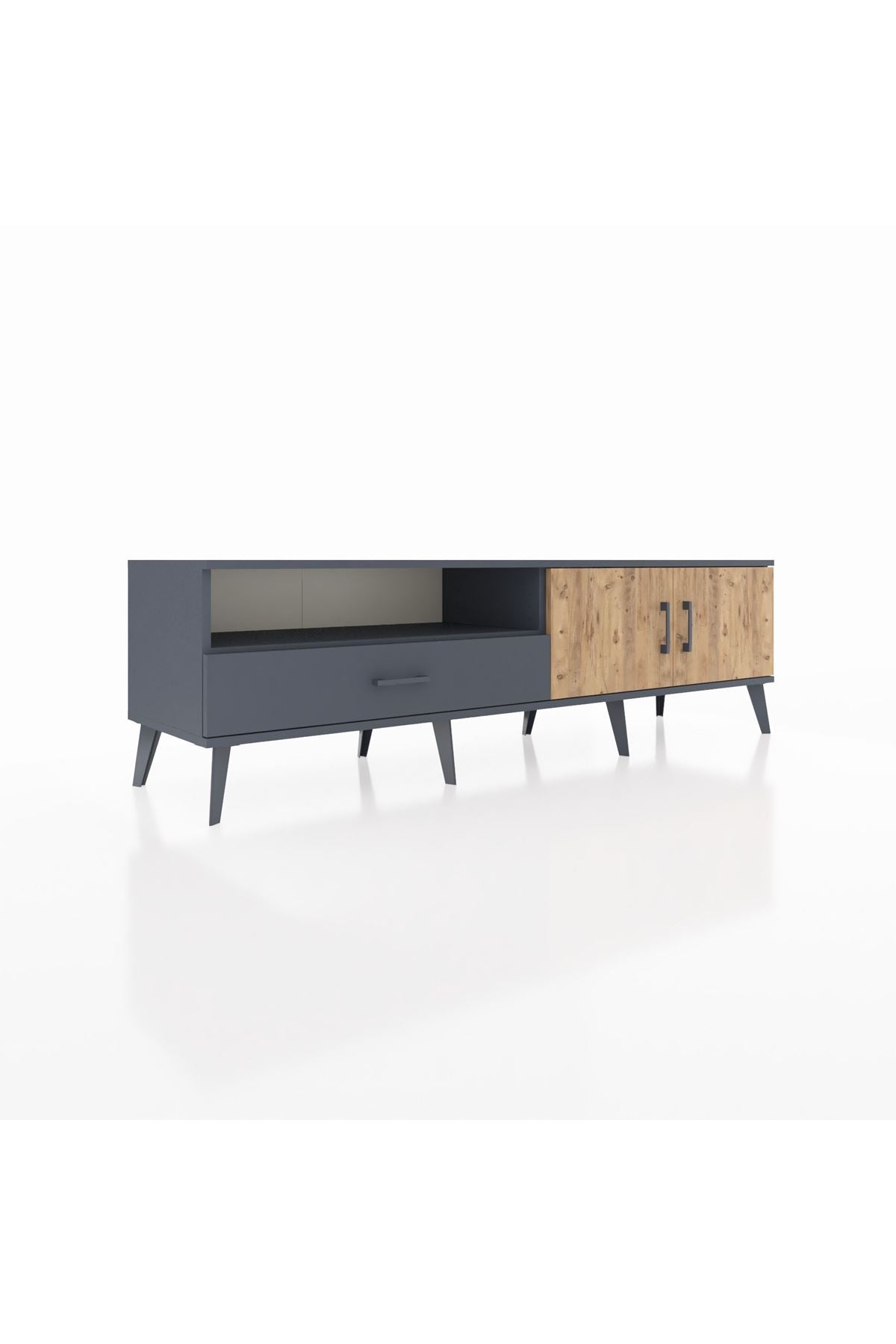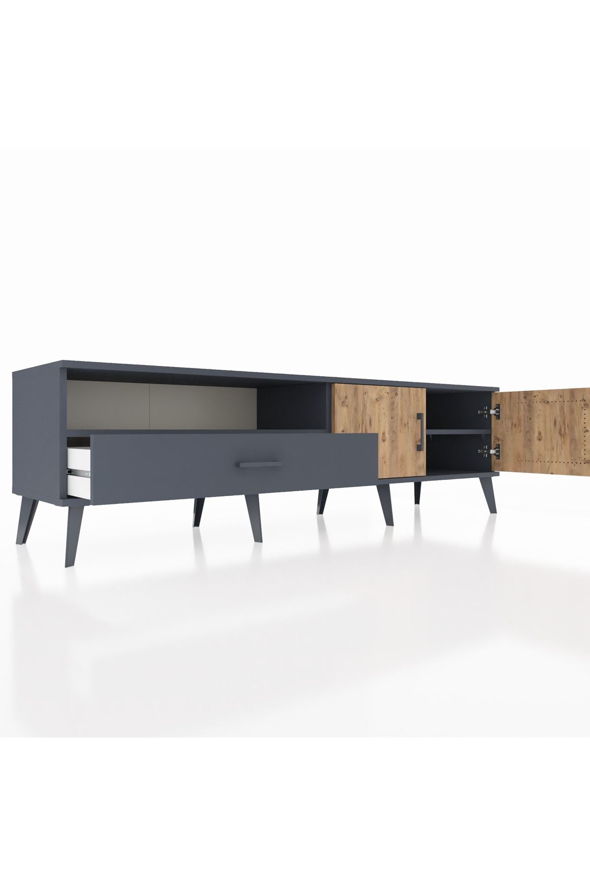 Hyperion TV Ünitesi 2 Raflı Tek Çekmeceli 2 Kapaklı 176x44x51 Antrasit-Çam/Antrasit