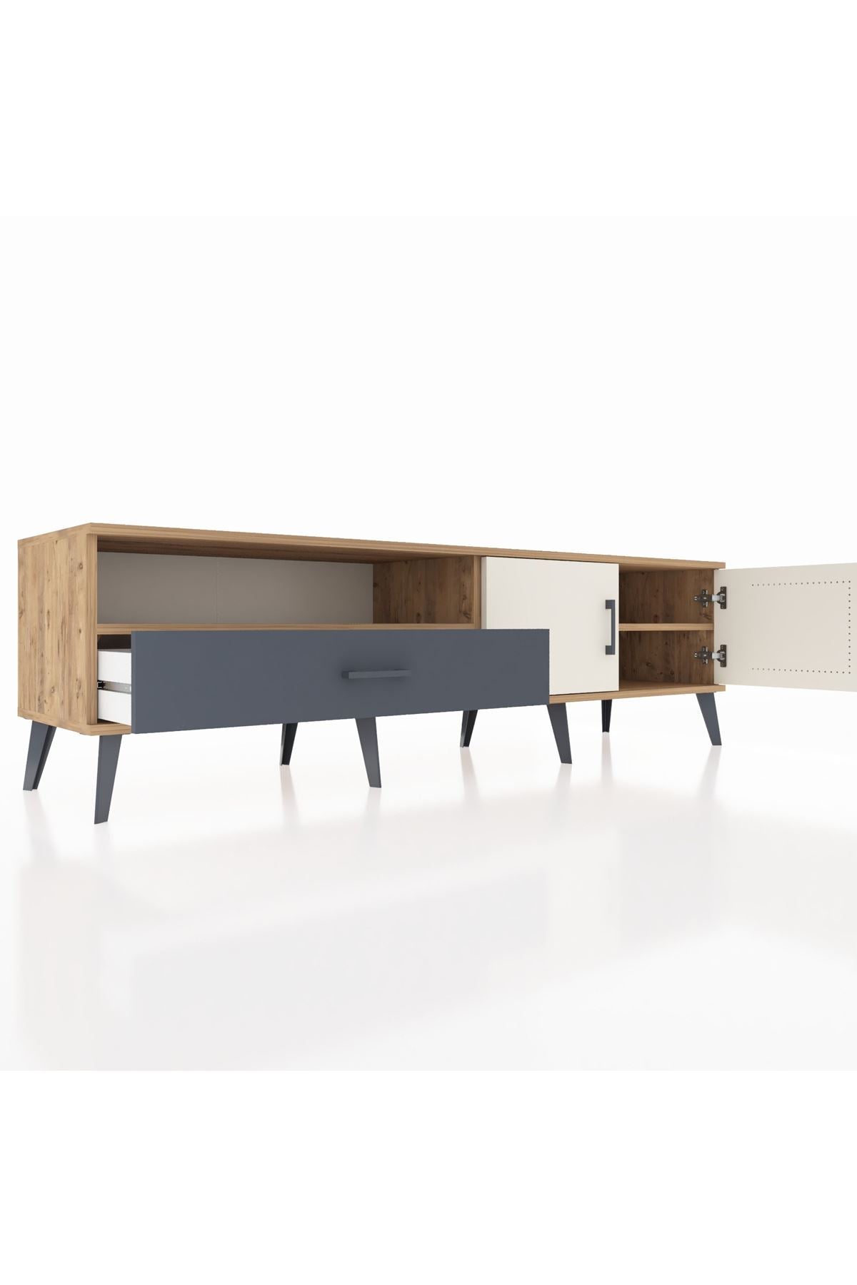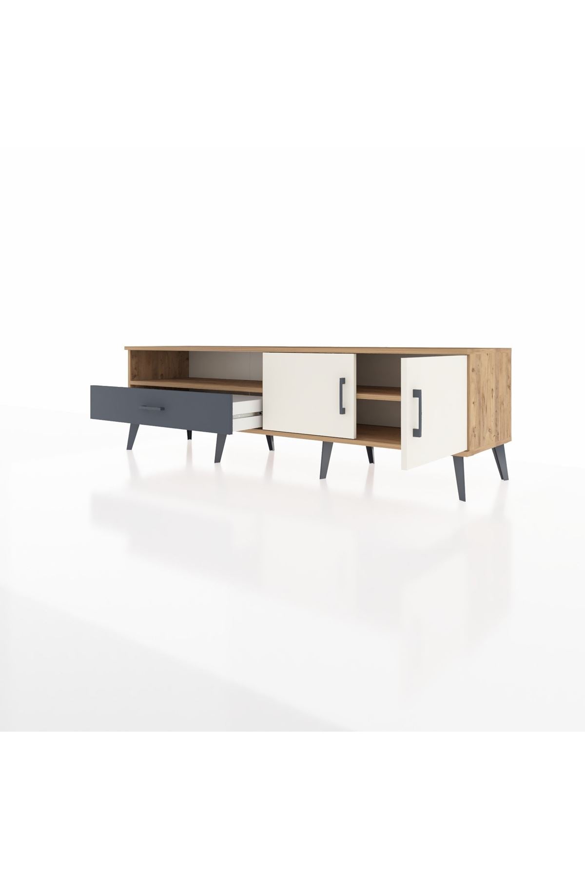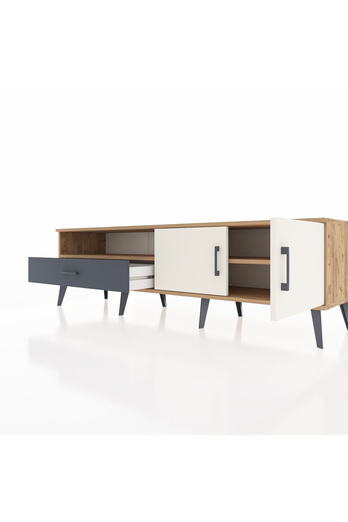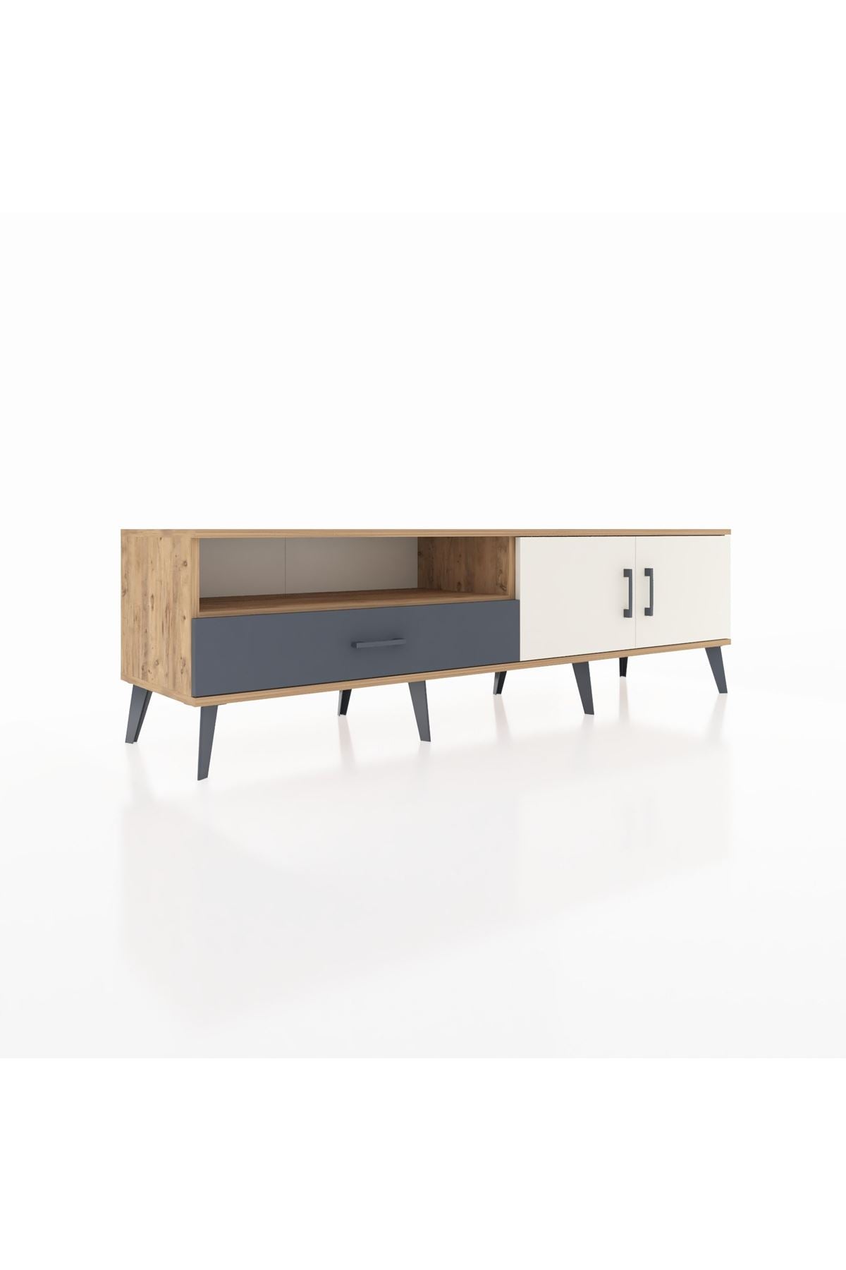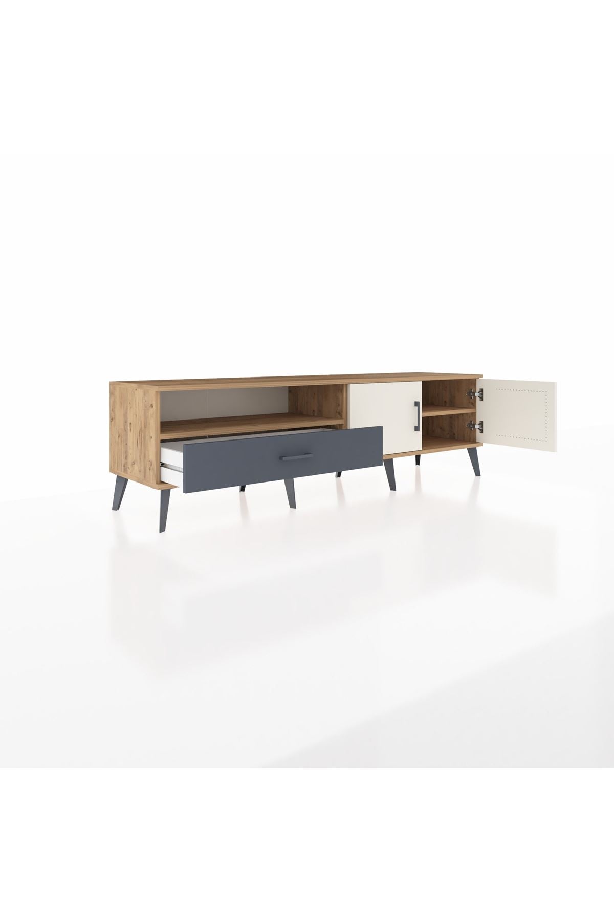 Hyperion TV Ünitesi 2 Raflı Tek Çekmeceli 2 Kapaklı 176x44x51 Çam-Aytaşı/Antrasit