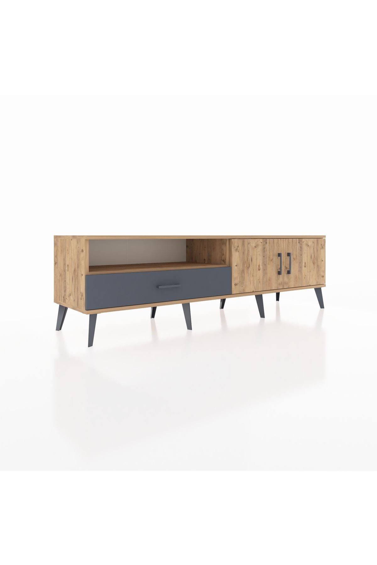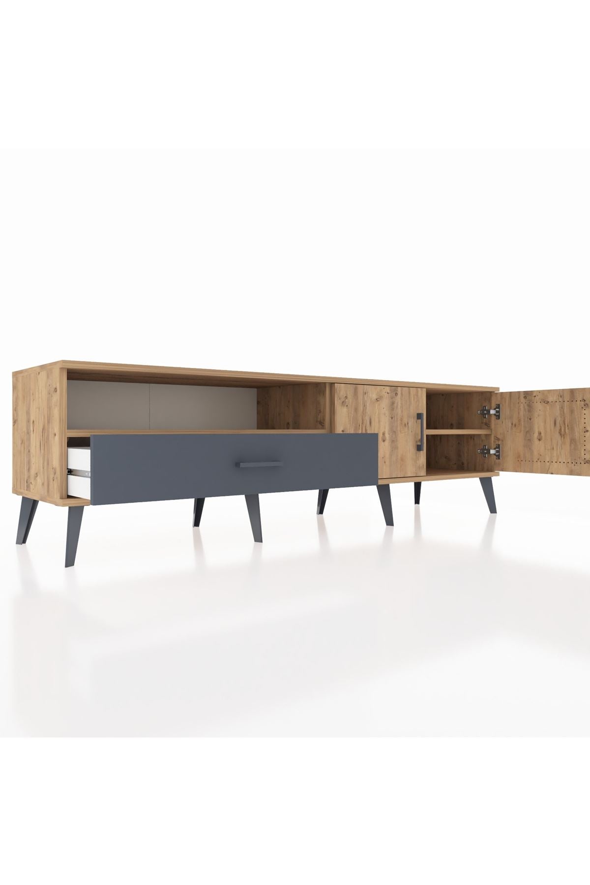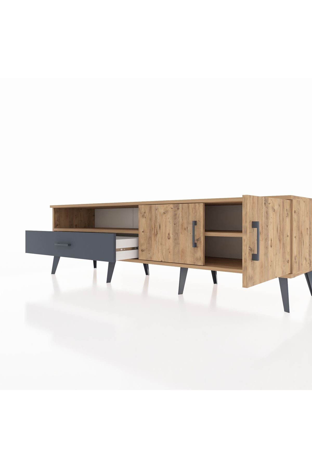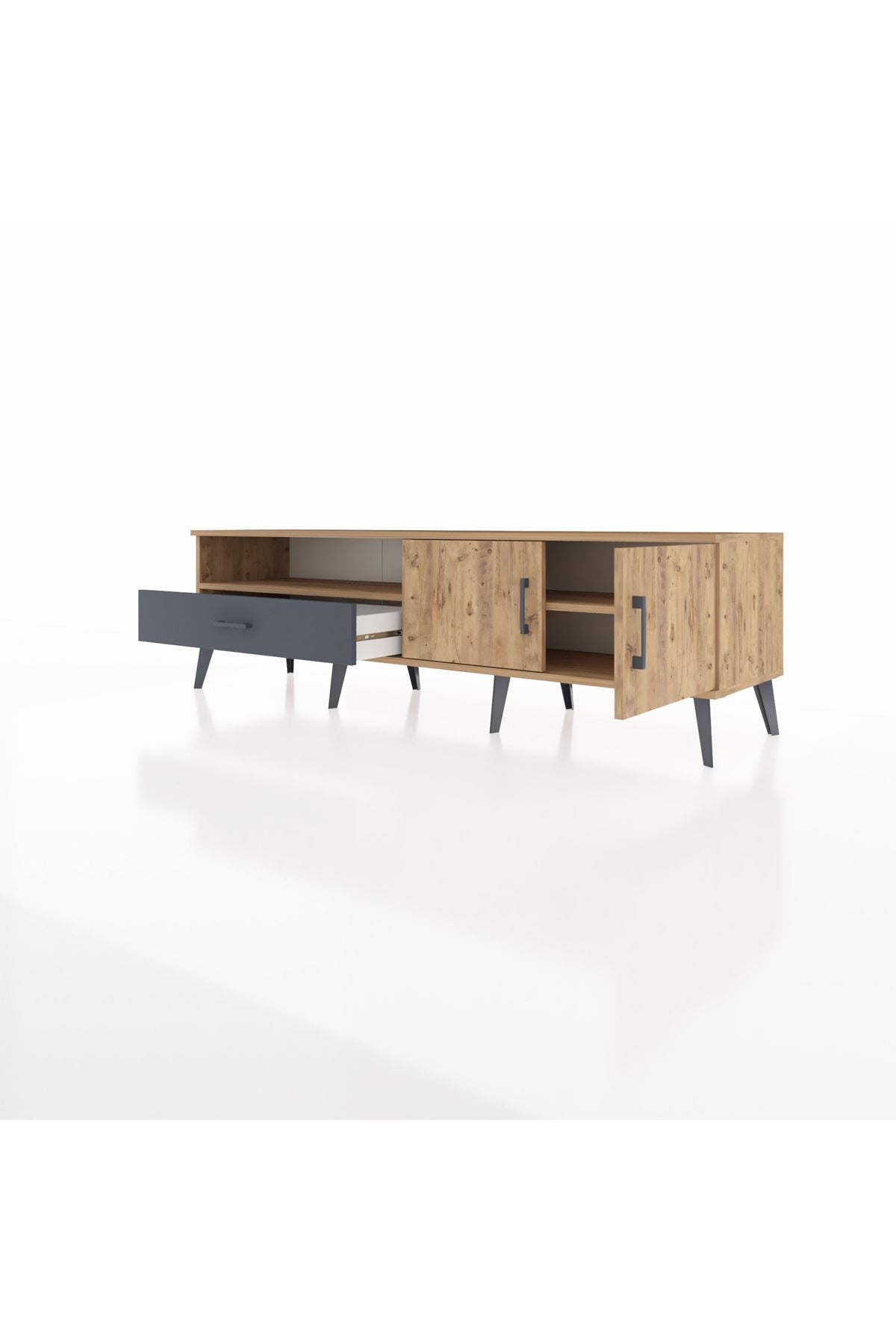 Hyperion TV Ünitesi 2 Raflı Tek Çekmeceli 2 Kapaklı 176x44x51 Çam-Çam/Antrasit