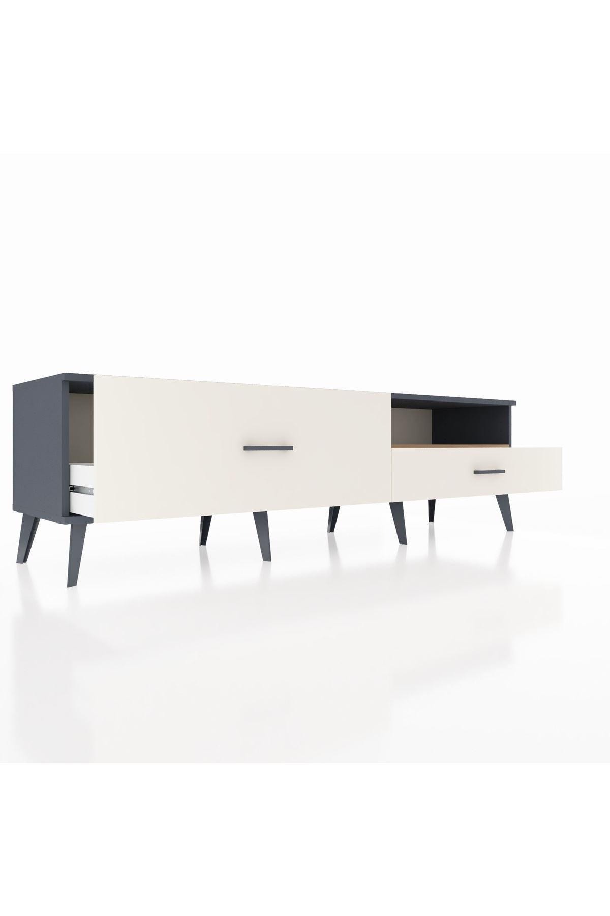 Hyperion TV Ünitesi Tek Raflı 2 Çekmeceli 176x44x51 Antrasit-Çam/Aytaşı